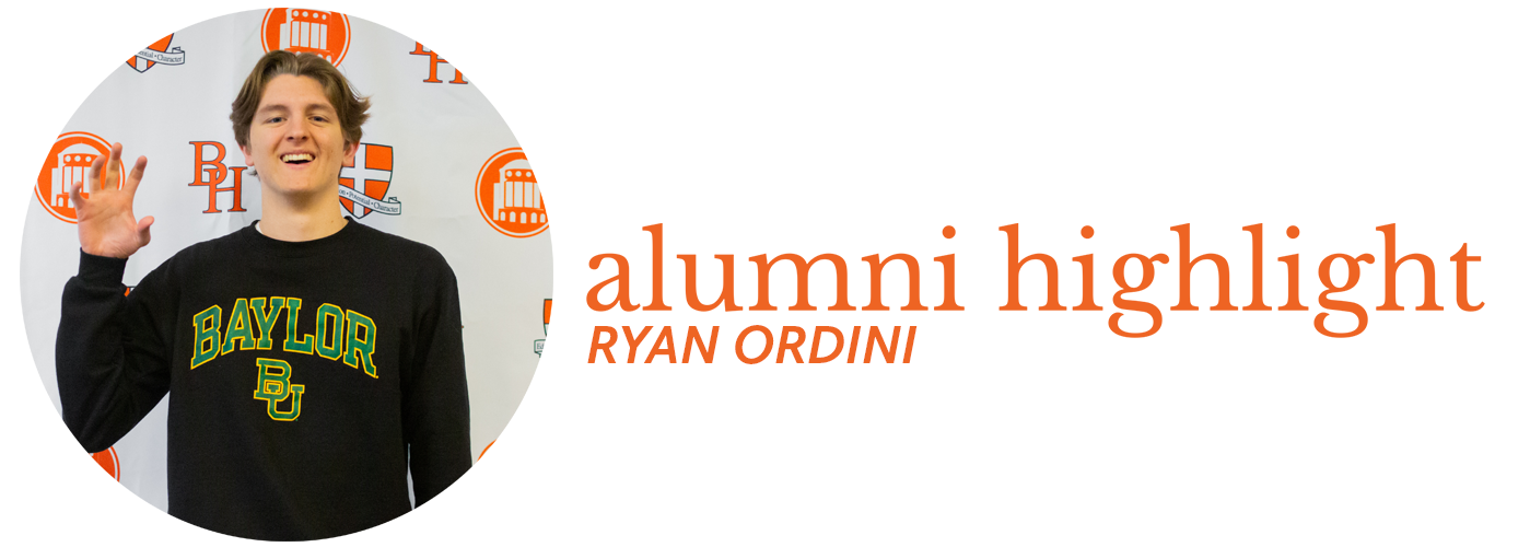 We have enjoyed getting to see and hear all about what our alumni are up to and what they are accomplishing in their lives so far! Most recently we caught up with alum, Ryan Ordini ’21. Ryan is currently attending Baylor University! We ran into him on our recent tour of Baylor, and caught up on how his college experience is going thus far.