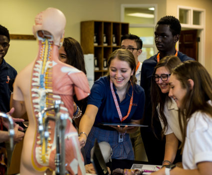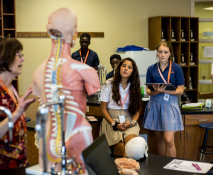 Seeing inside the human body in their lab this week allowed our students in A&P to orient themselves to the various systems they will be studying in class this year. Where is your appendix? How do your intestines work? How does blood flow to and from your lungs?