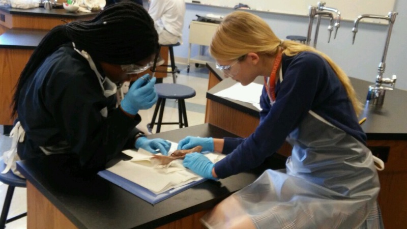 Pre AP Biology students were able to enrich classroom discussions with a hands-on experience in lab. Using fetal pigs, these students had a chance to improve their dissecting skills and knowledge of the anatomy of major body systems.