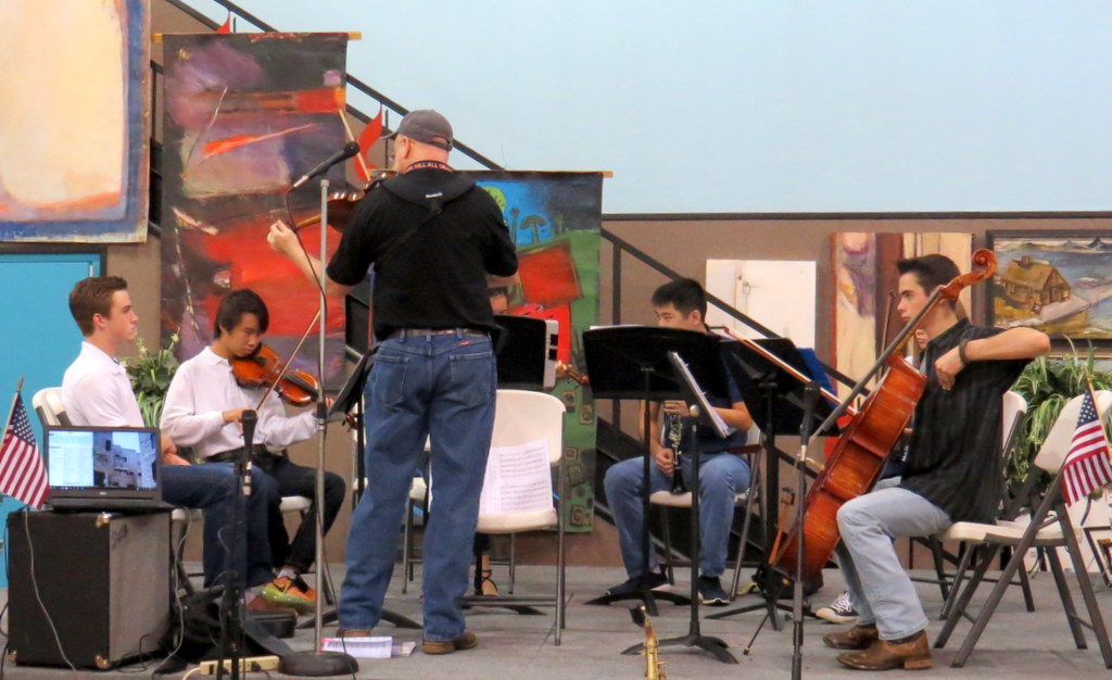 Mr. Gardner played some Jazz tunes in between songs and the other string and wind players performed about six songs. Vn 1: Cole Fitzgerald, Tyler Tan, Vn 2 Denise Tan, Viola Holly Stadelmann, Cello Hayden Gardner, Clarinet Alan Zhu and piano Bolun Zhang.