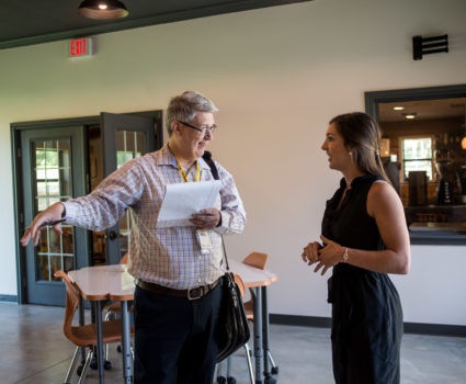 Now that the business lab is complete, students will be able to meet on-site in the collaboration space, allowing them easy access to both The Guard Shop and The Cabin Coffee House for their various projects and initiatives.
