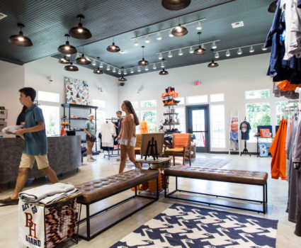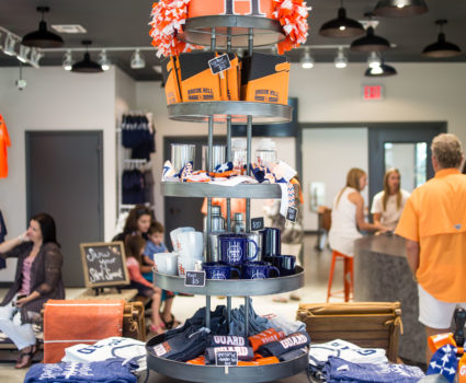 This last year, we launched a number of new courses in entrepreneurship, business principals and marketing that will utilize this space as a lab for implementing the ideas students are learning about in class. Over the last year, students collaborated on the layout and products for The Guard Shop.