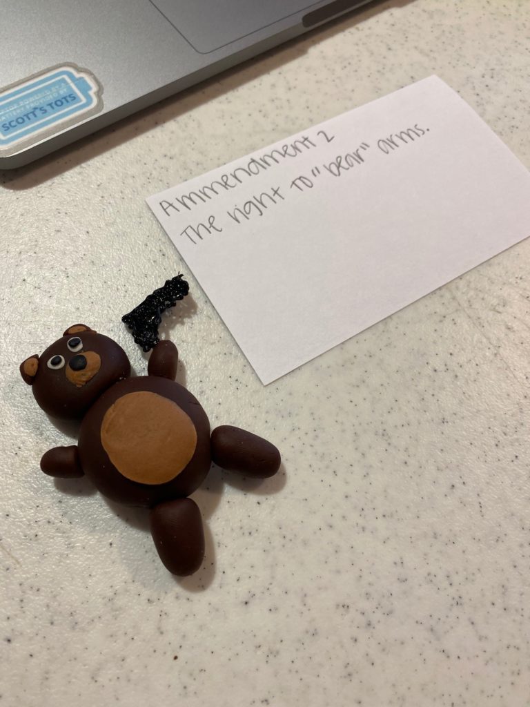 Students were challenged to use the various materials to create 3D models or symbols representing the U.S. Bill of Rights. They were given access to 3D printers, 3D pens, Play-doh, Legos, origami, calligraphy, craft sticks, hot glue guns, pipe cleaners, straws, and more! The objective was to creatively represent their learning and then have a discussion about these incredibly important first ten amendments to the Constitution.