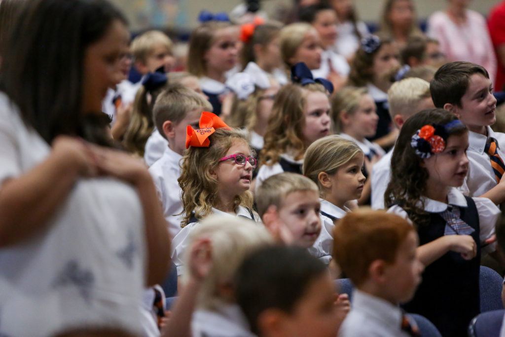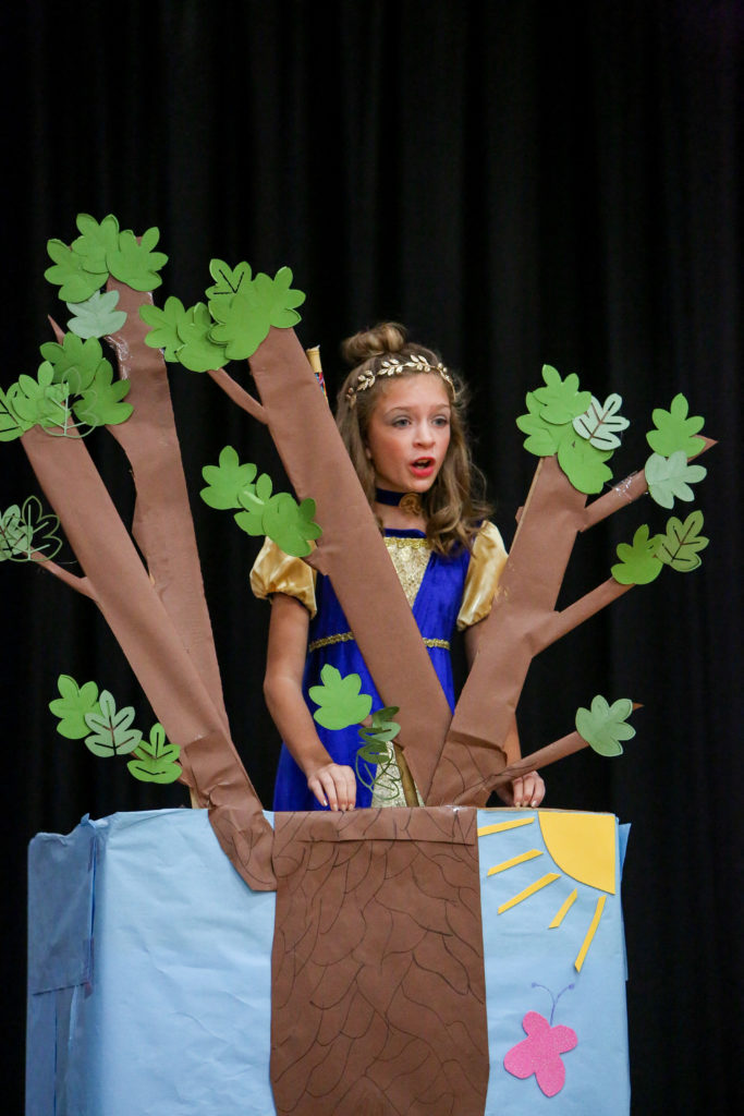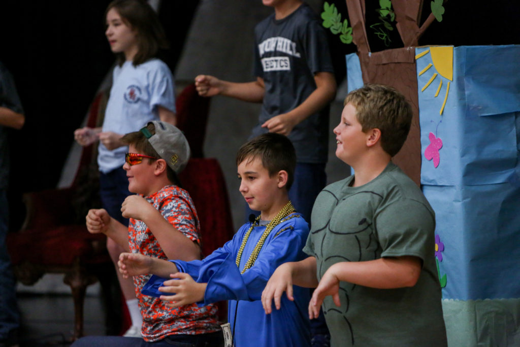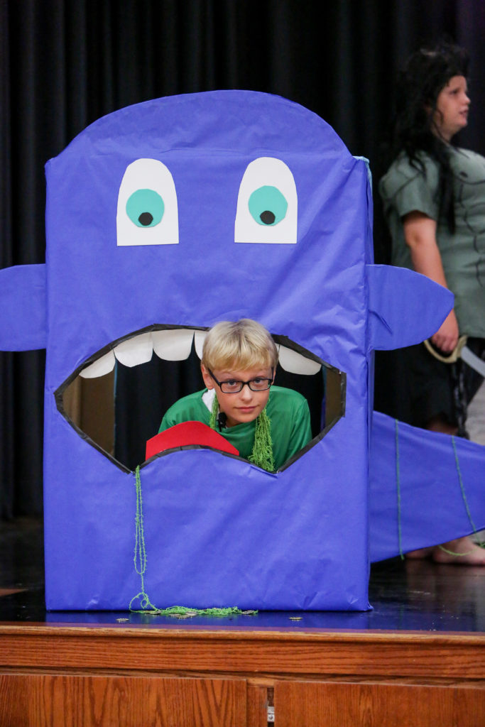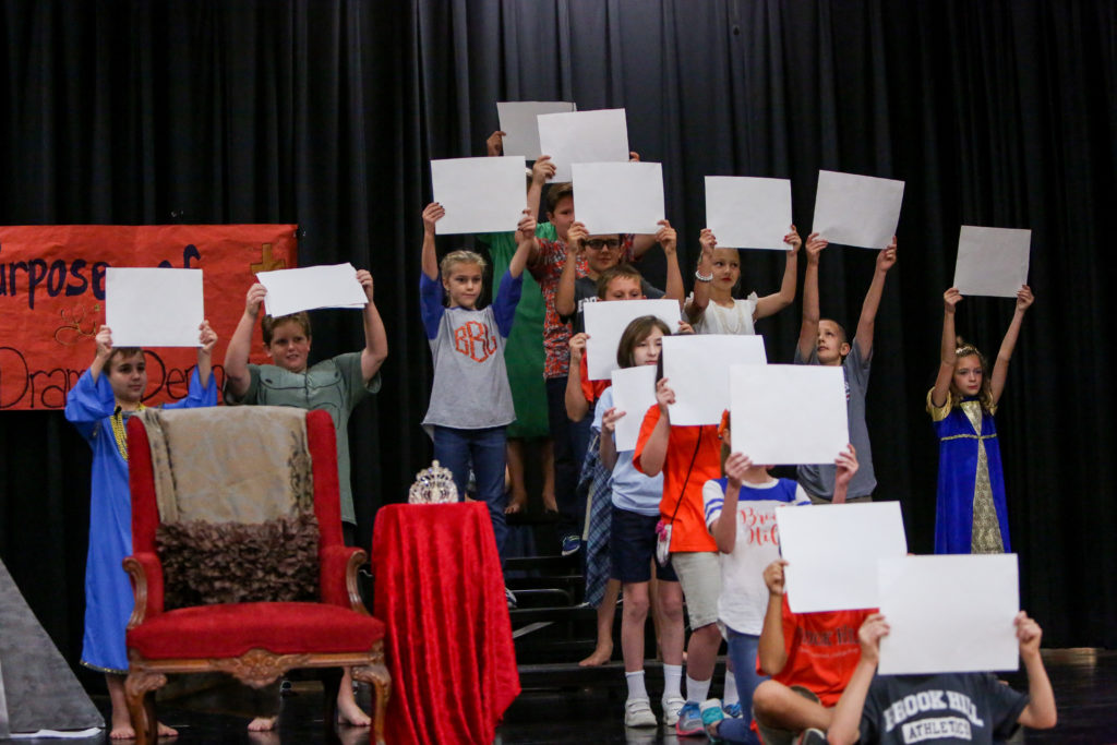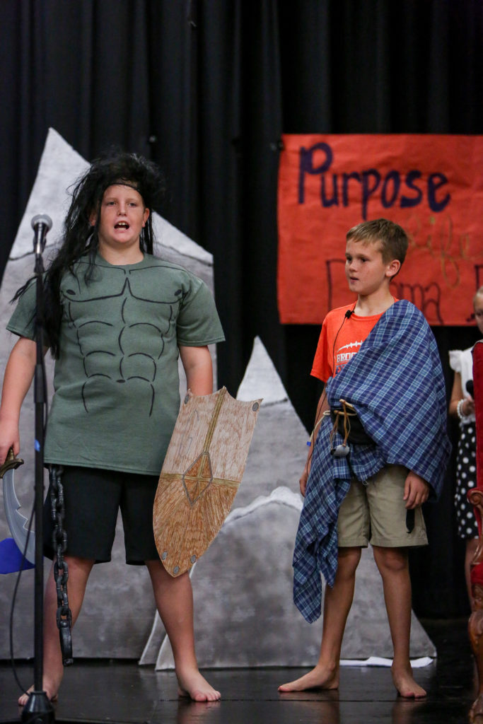 David overtakes Goliath in Lower School chapel This week in Lower School chapel, Mrs. Bickerstaff’s fifth grade class acted out the story of David and Goliath from 1 Samuel 17.