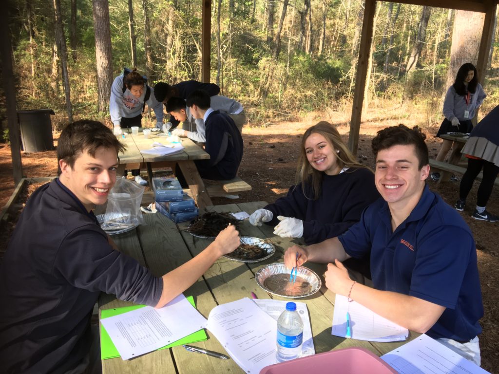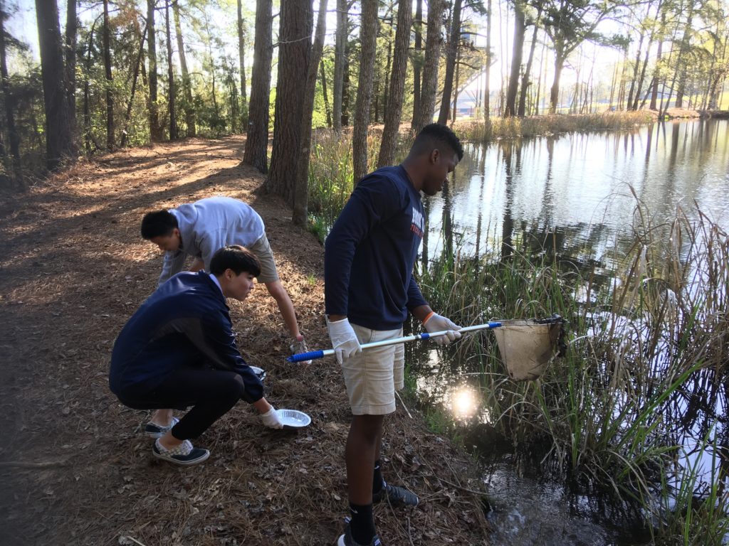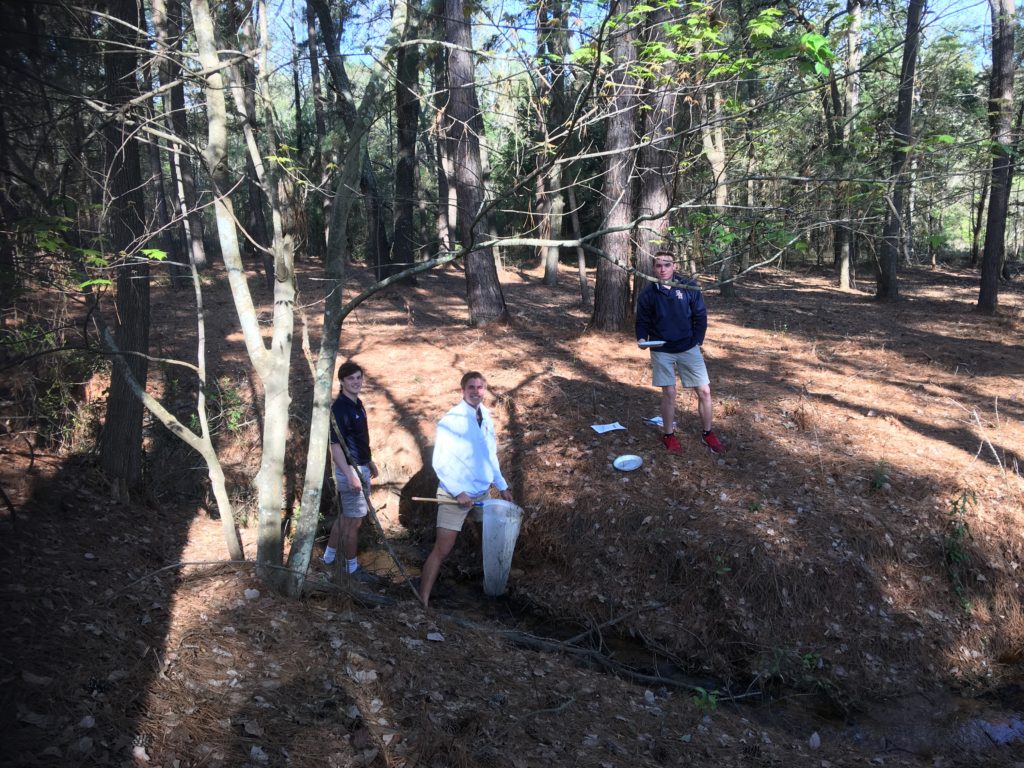 The AP Environmental Science class evaluated the water quality of the Brook Hill pond by measuring the dissolved oxygen content and the pH, as well as sampling for benthic macro-invertebrates. These are typically the larval forms of various insect species, the presence of which indicate a healthy aquatic ecosystem. Based on the results of the study the Brook Hill pond is a thriving ecosystem.