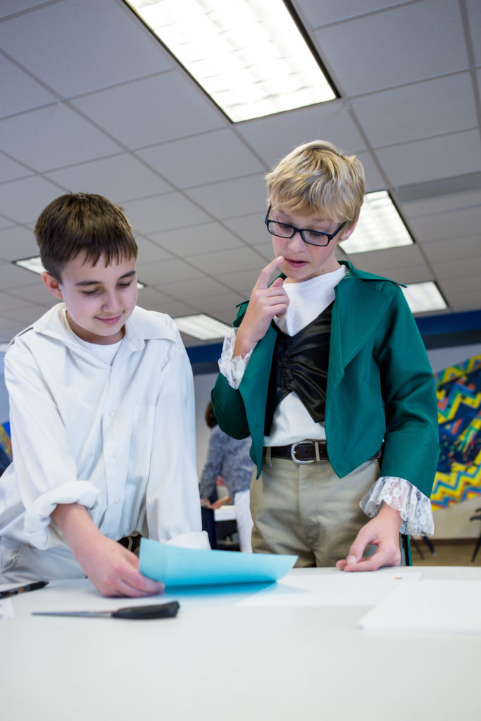 Fifth graders spend a good deal of time learning about the colonial period of American history. To end their study, the classes toured a Brook Hill version of Colonial Williamsburg. Students played a game at the tavern, ordered a new pair of shoes at the cobbler’s shop, went to church, voted in the Governor’s Palace and went to school which was different from their regular classroom! The fifth grade teachers think they appreciate their pencils a little more now!