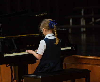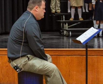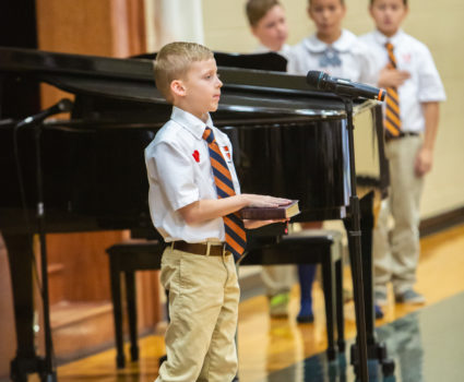 From the outside, this might seem like a simple gathering of students. Sitting in the auditorium however, you see students growing in their public speaking skills as they lead their peers in saying the pledge. You see kids who are given the opportunity to rejoice through song and mature in their ability to sit respectfully through a brief time of sharing about scripture and truth. You see a lesson in manners, and a chance to honor other peers as they perform.