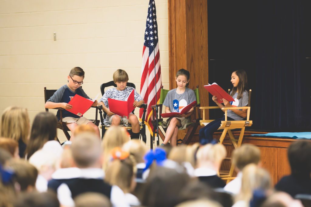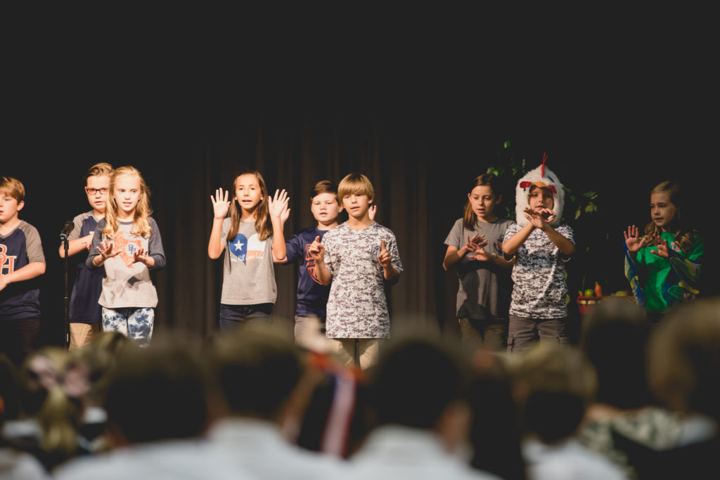 God created the world this week in Lower School chapel In Lower School chapel, Mrs. Dawkins’s fourth grade class performed the story of creation from the book of Genesis.