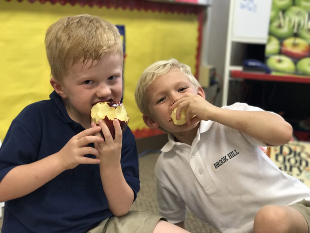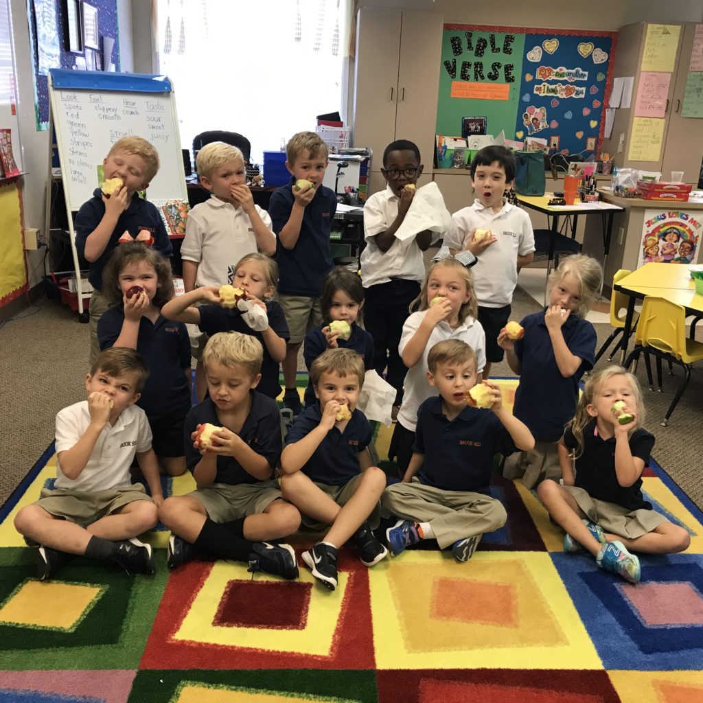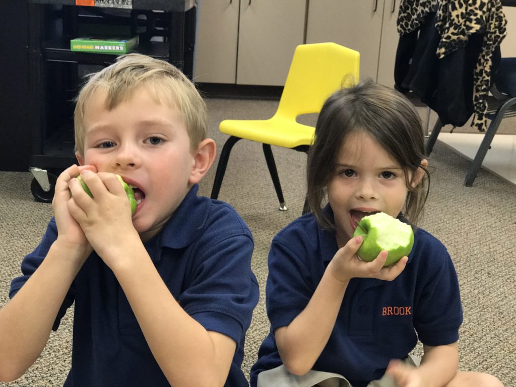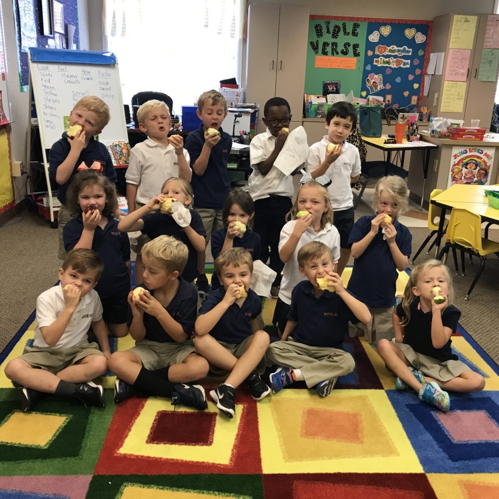 Kindergarten eats apples in class