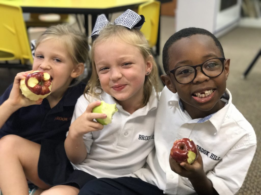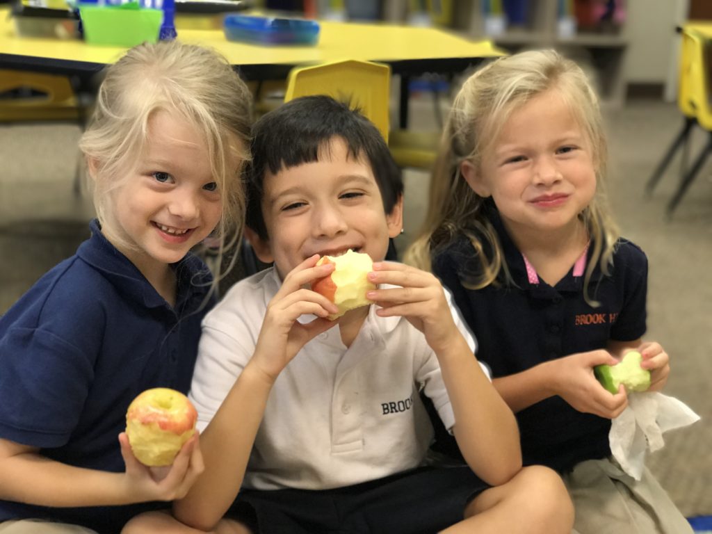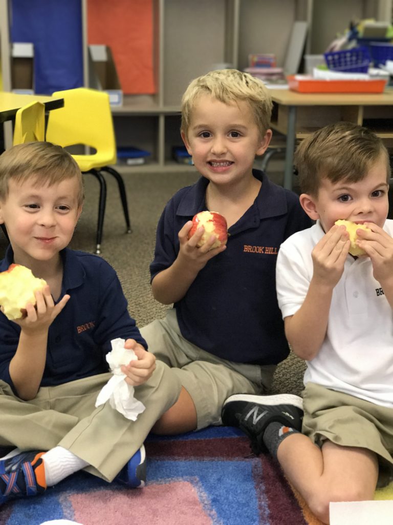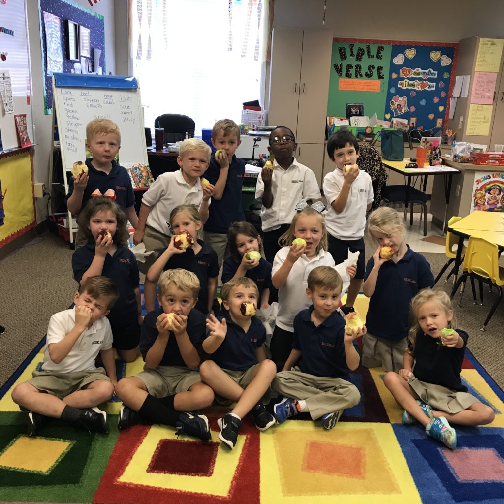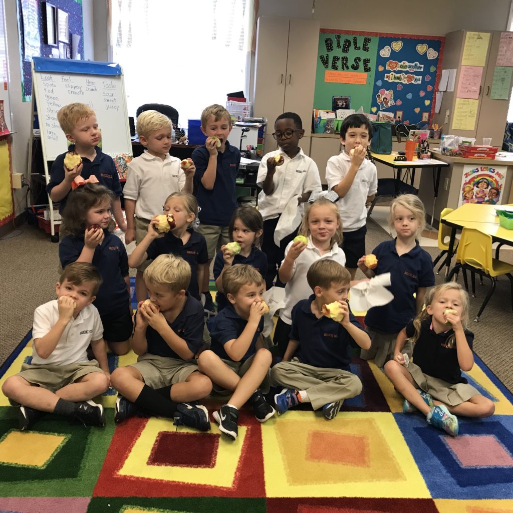 Kindergarten eats apples in class