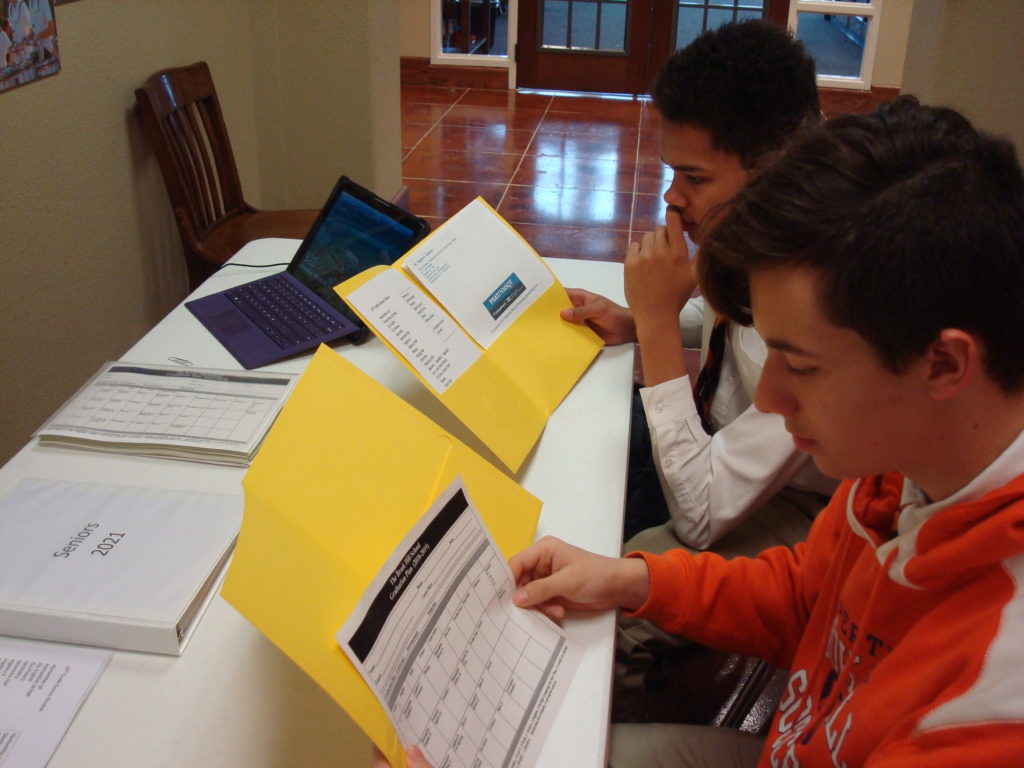 It has been delightful working with current ninth grade students this week during Study Hall as they selected courses for next year. Seniors 2021 received a copy of their transcript, PSAT scores, and a four-year plan in a yellow folder that they were asked to share with parents.