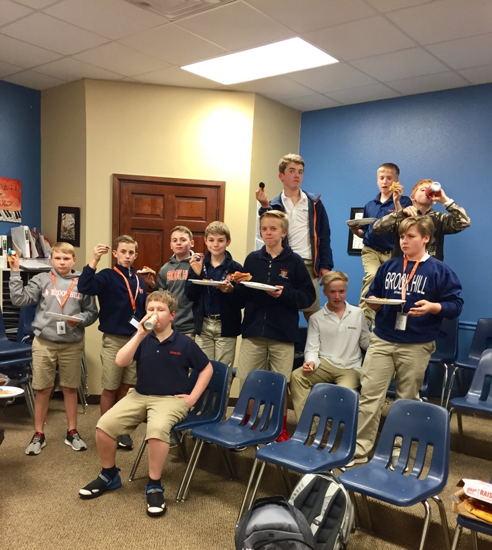 After a successful weekend for the middle school one act play and musical, the 7th and 8th grade choir and drama students celebrated during one of their class times. While enjoying their snacks, the students discussed their feeling about how they did and what the experience was like. For several, it was their first time to perform in a musical or play. The students decided that that overall the experience was a positive one and something they would like to do again.