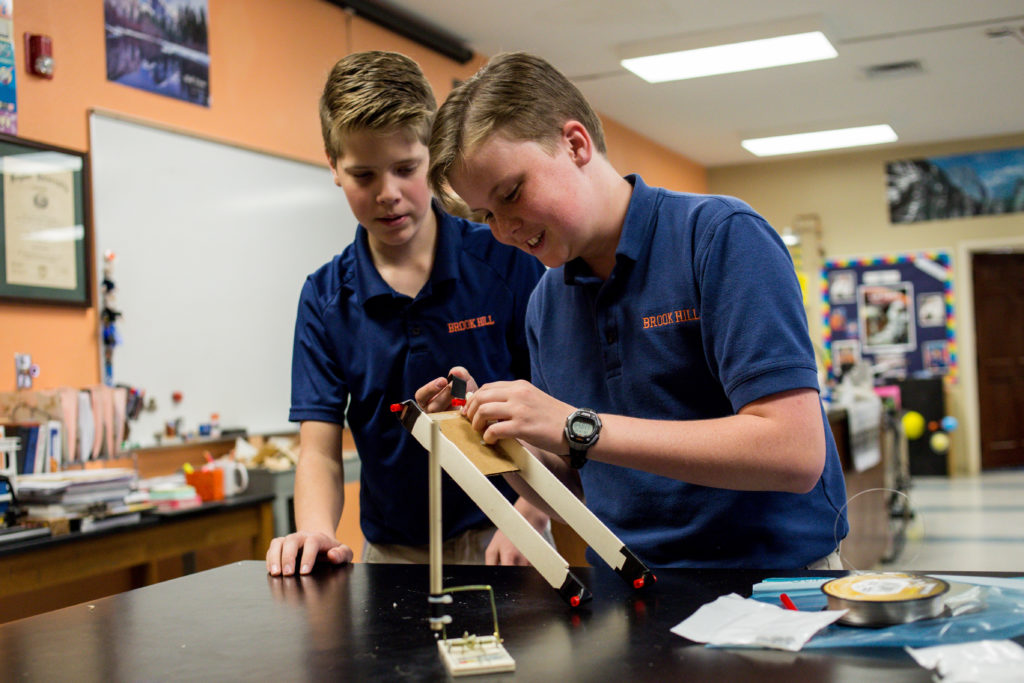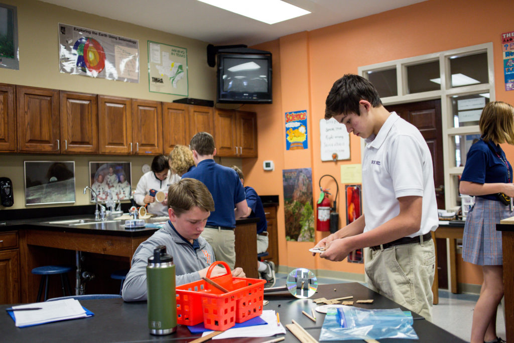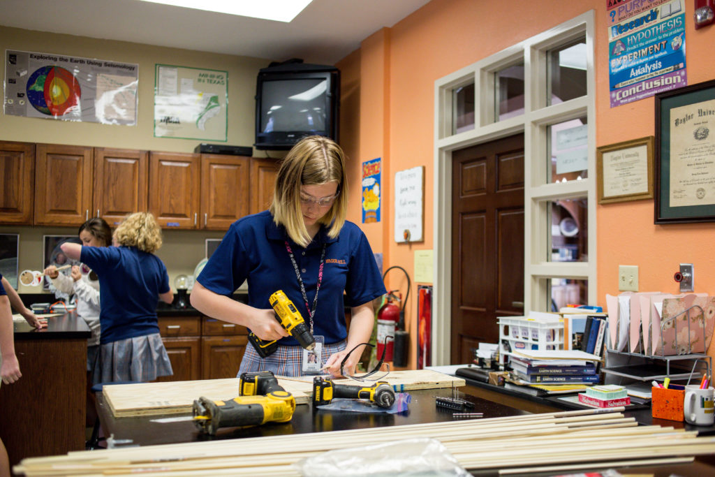 Middle school science students build race cars