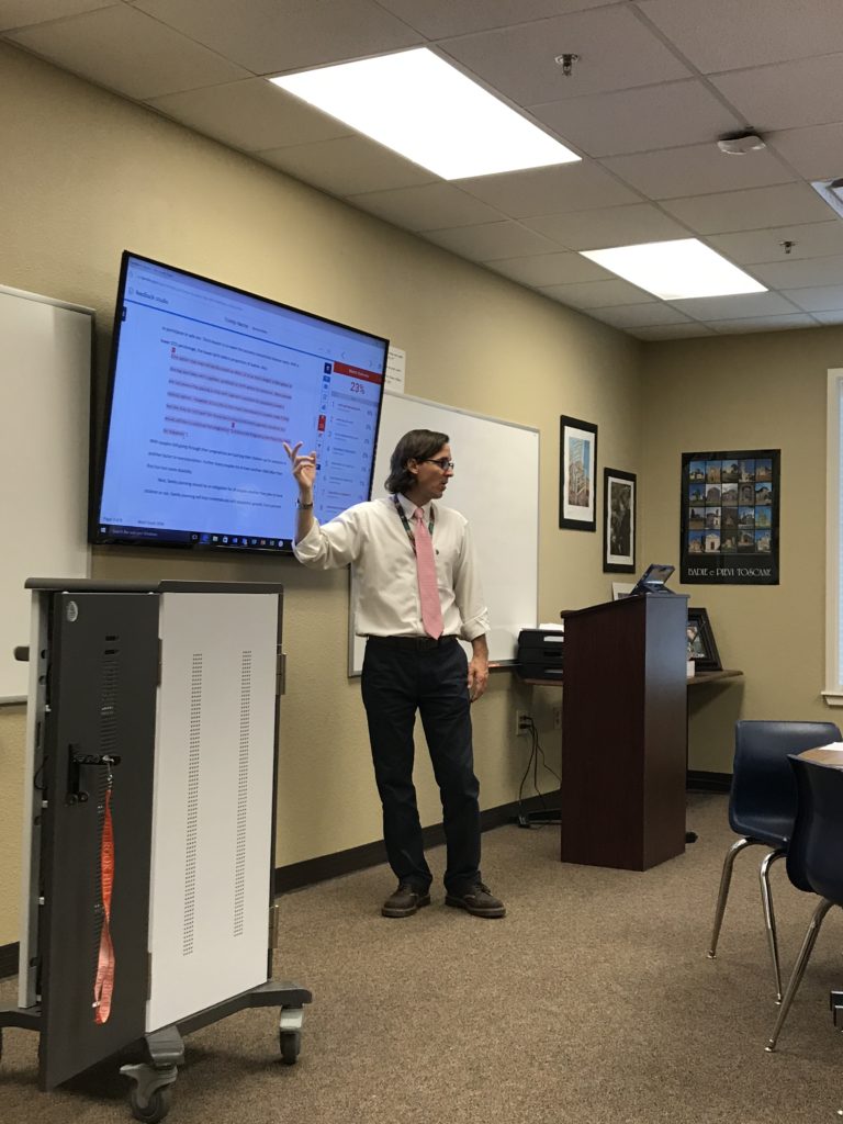 Mr. Travis’s class used tablets to analyze their essays