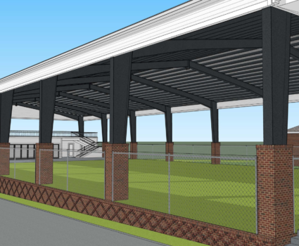announced Brook Hill Athletic Director, Wally Dawkins who has spear-headed the project. “The 50 yard long and 30 yard wide turfed and covered athletic training area will allow all of our athletes the opportunity to practice, train, and do skill work while being largely shielded from the elements,” Dawkins adds. “This covered facility will also provide a venue on the east end of the structure to host a wide variety of activities for our students, organizations, & families for the purposes of things like Student Life, Development, and general recreational activities. “The hospitality suite will be enclosed with accordion style glass doors, provide indoor and outdoor seating, offer all the amenitiesof an upscale kitchen with granite counter tops, stainless steel appliances, and an island with bar-height stool seating.
