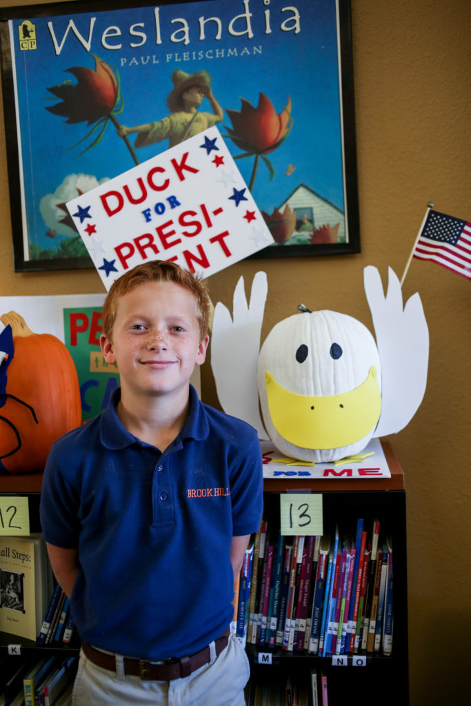 In honor of Great Book Week, Pumpkins on Parade has been happening in the Lower School Library. Pumpkins on Parade is a contest where students decorate or disguise a pumpkin to resemble a character from a library book. The pumpkins were on display Monday – Friday.