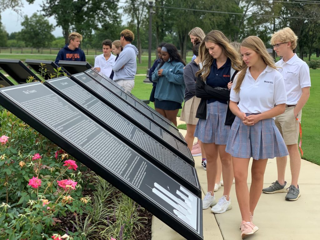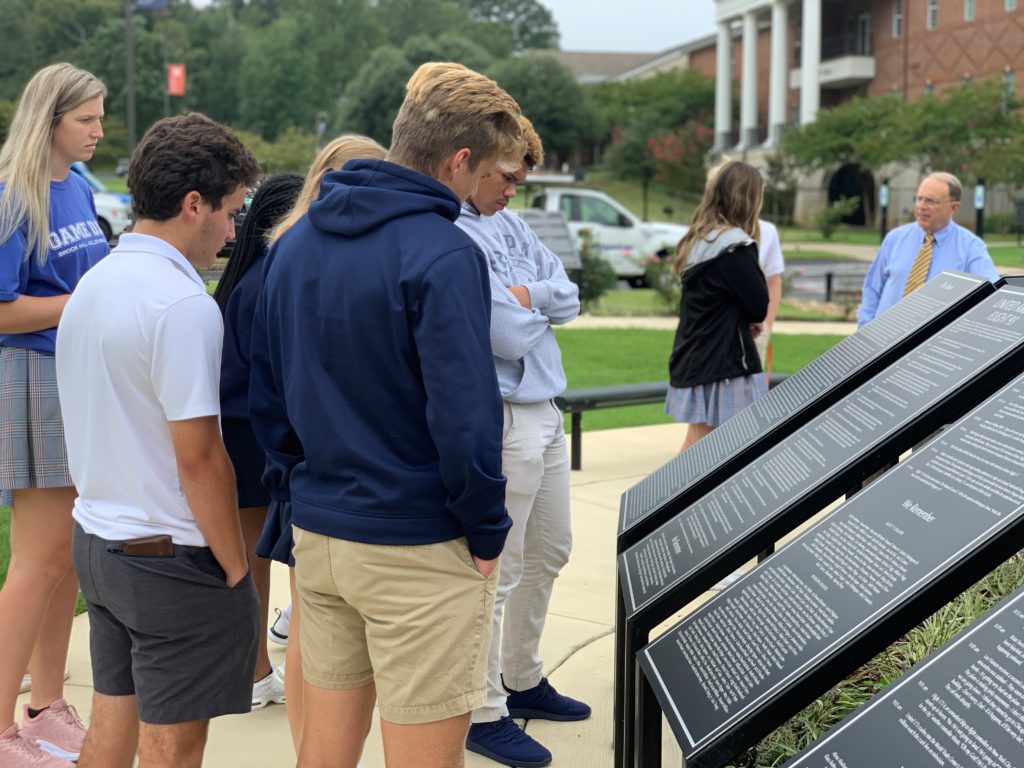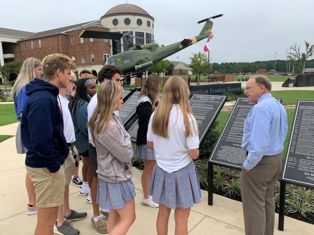 Students in Mr. Dement’s Government class visited the American Freedom Museum this week to remember 9/11. After watching footage in the museum, students went outside to the new memorial where Mr. Dement retold the story of that day and challenged students to choose someone who lost their life during the attack and to pray for their family. Seeing the list of names for everyone who lost their life on 9/11 at our memorial impresses upon our students the magnitude of the losses on that day. May we #neverforget.