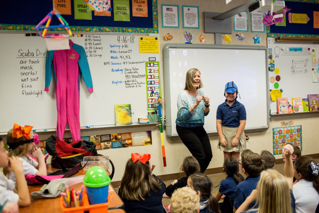 Second Graders have been studying the ocean. As a culminating lesson, Mrs. Batis brought her scuba gear to school for a lesson to all Second Graders. Students learned the names of the equipment and the uses. Some students tried on the equipment to get a feel of what it would be like. Mrs. Batis shared personal experiences with the students about her diving over the last 30 years. She also shared personal pictures of coral, fish, sea anemones, sponges, sea fans, etc. At the end, the students viewed a 6-minute video that showed life in an ocean.