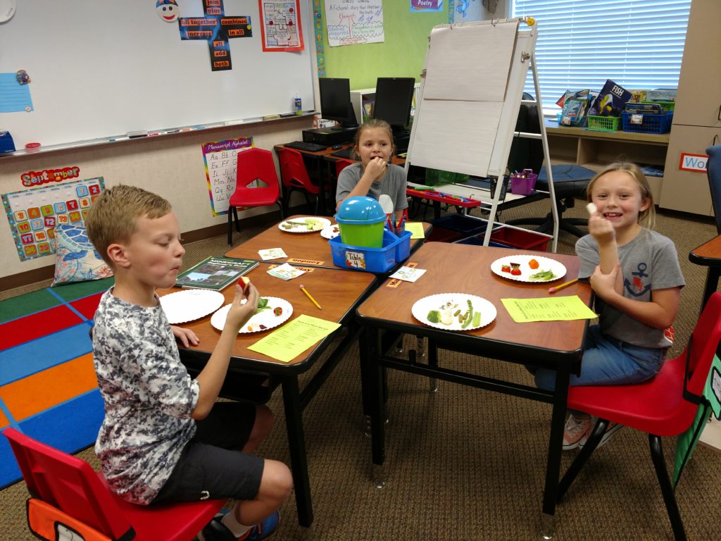 Second Grade students learned about living and non-living things in science. Each student brought a fruit or vegetable to class on Friday. The students classified each food item into the six parts of plants-flower, stem, root, seed, fruit and leaf. Then students tasted each food item and recorded whether they liked it or not. Many students found fruits and vegetables they didn’t know they liked!