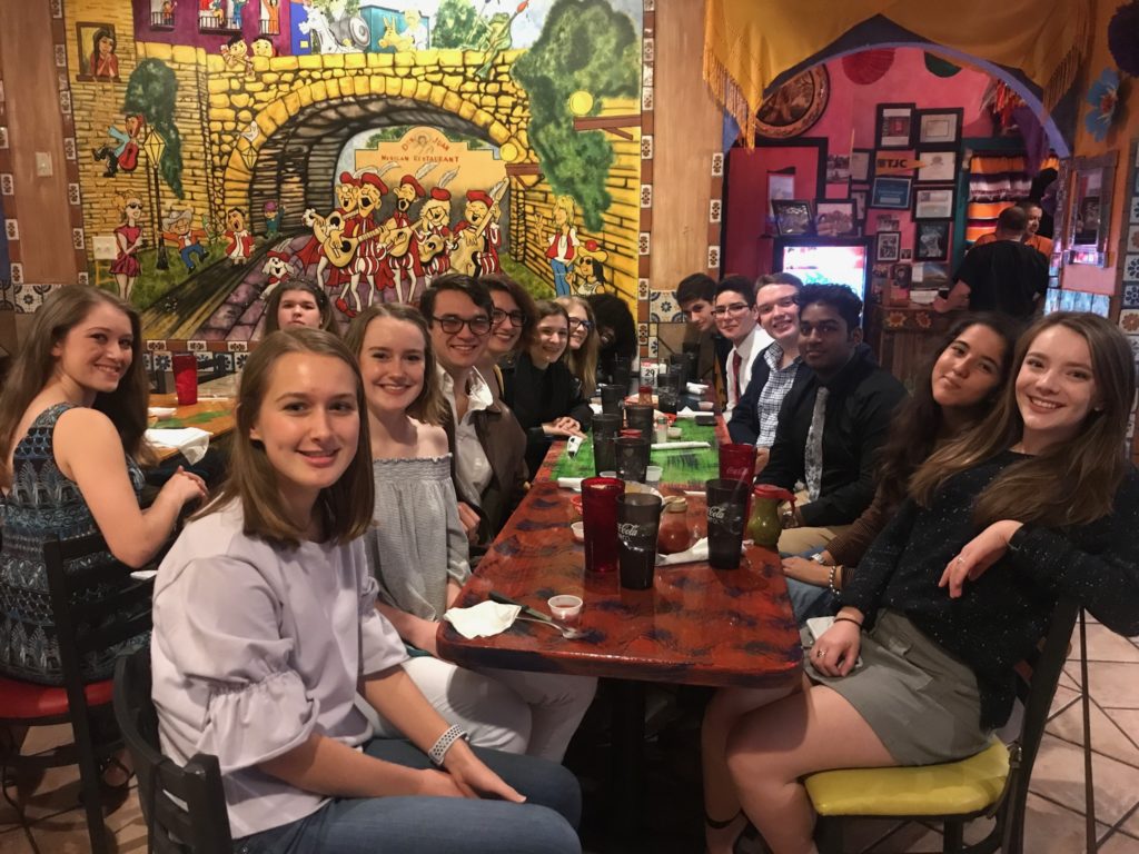 The concert was a production of Los Chicos del 512. They performed some of Selena’s most popular hits in English and in Spanish including the students’ favorites of Como la flor and Bidi Bidi Bom Bom. Prior to the show, the students enjoyed a true Mexican-style dinner at Don Juan’s restaurant in Tyler.