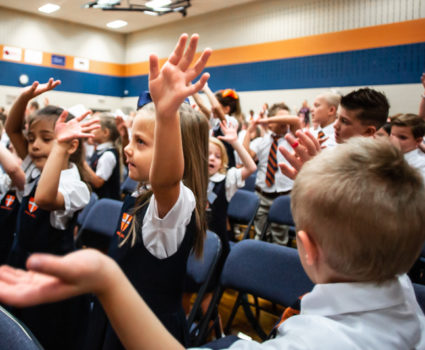 Each week students have the opportunity to gather with their peers to sing and learn through Chapel.