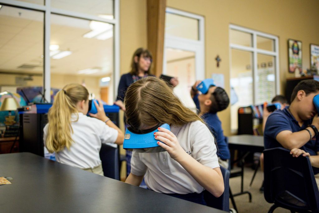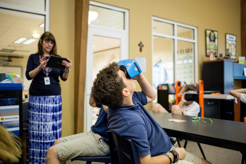 Fifth graders experienced a virtual reality field trip to Great Britain thanks to our new Google Expeditions kit.