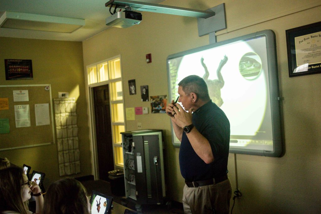 In Coach Collins’s classes this week, his students will be dissecting frogs. In order to learn what the scientific name of a frog’s body parts are before they are in front of one, he is using a virtual lab with them. This way they will be fully prepared when the real dissection comes.