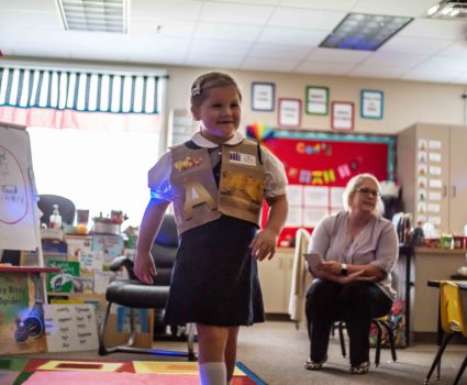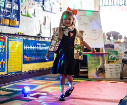 Complete with a disco light and red carpet, each student had the opportunity to design and decorate their vest with a specific letter in mind and then we had so much fun as a class presenting each letter with a walk down the red carpet! Learning our letters and connecting those to real-life objects and words creates the foundation for students who are strong readers, writers, and communicators. It was such a joy to see our kindergarteners grow in confidence academically through the comprehension of their letter, and socially as they shared in front of their classmates!