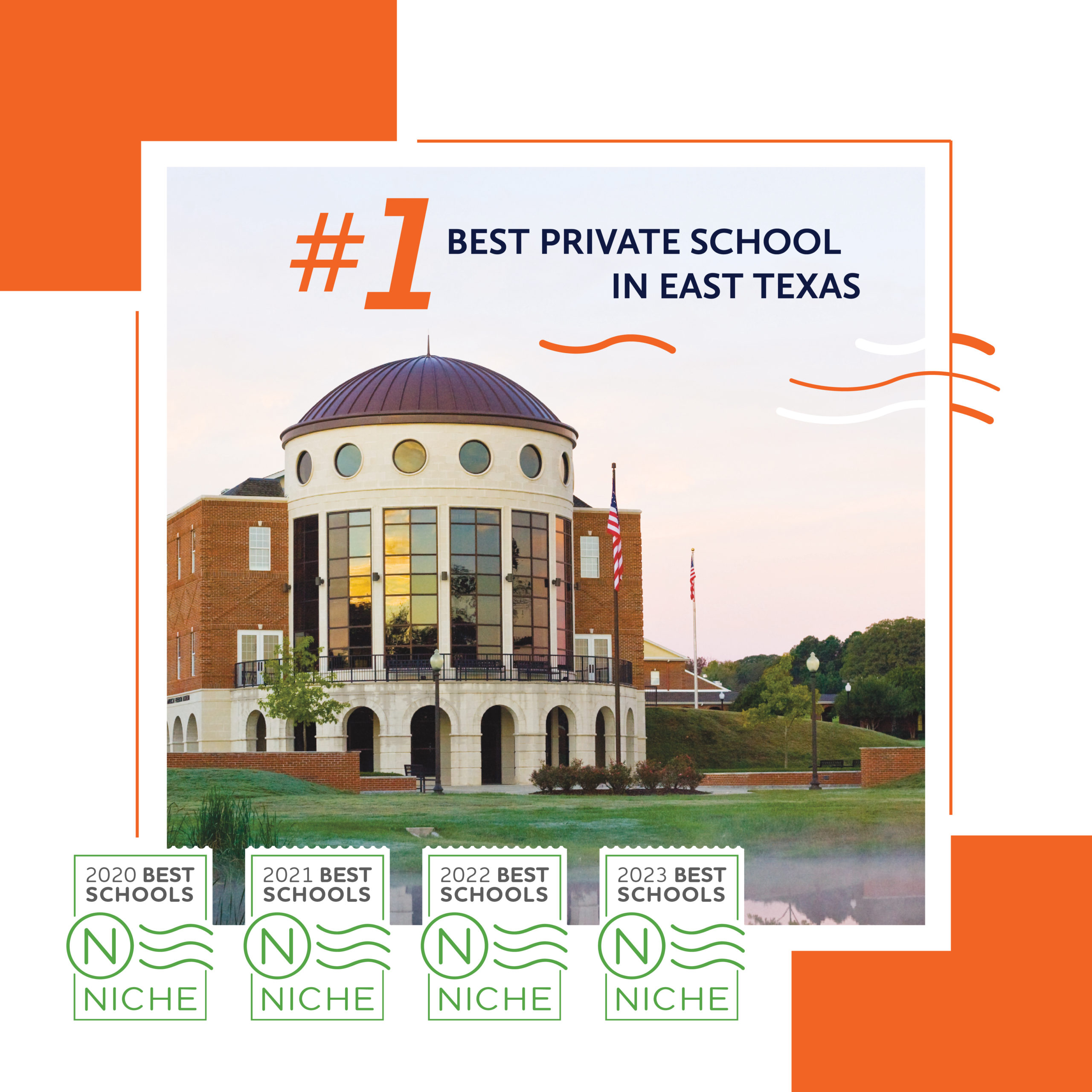 We are excited to announce that we have been recognized as a 2023 Best School in Smith County (Tyler, Texas | East Texas) by Niche for the fourth year in a row! Brook Hill has also been named in the Top 100 Christian High Schools in the entire USA again this year.