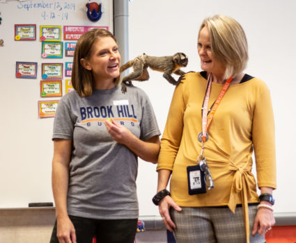 Brook Hill 2nd graders had the privilege of welcoming Dr. Lori Cavitt, DVM, mom of Brock and Barrett, to Mrs. Berry’s class for an introduction to their “Community Unit”. Dr. Cavitt brought her Owl Monkey, Archie, to visit and interact with the class as students began their conversation understanding the different ways we interact […]