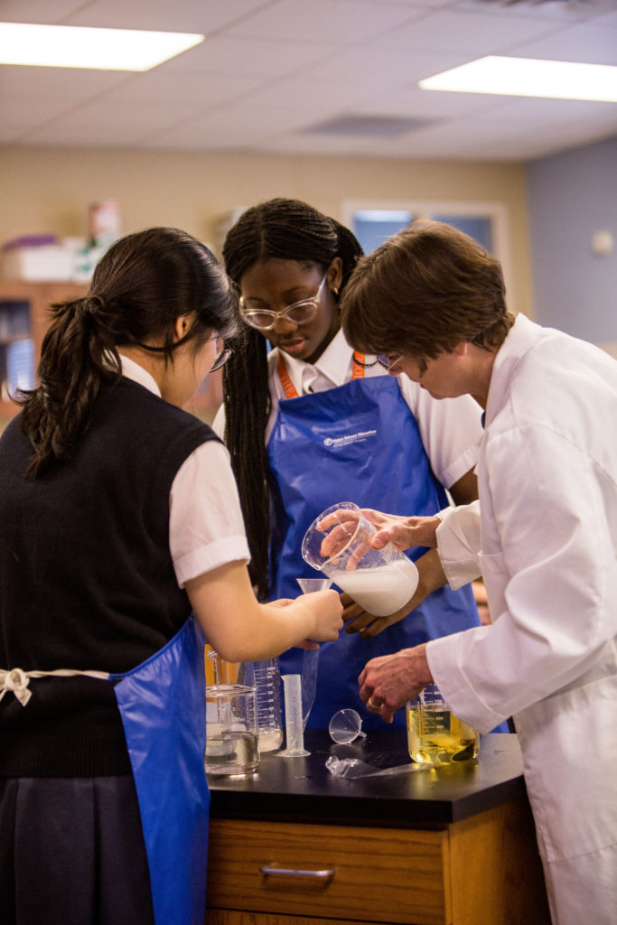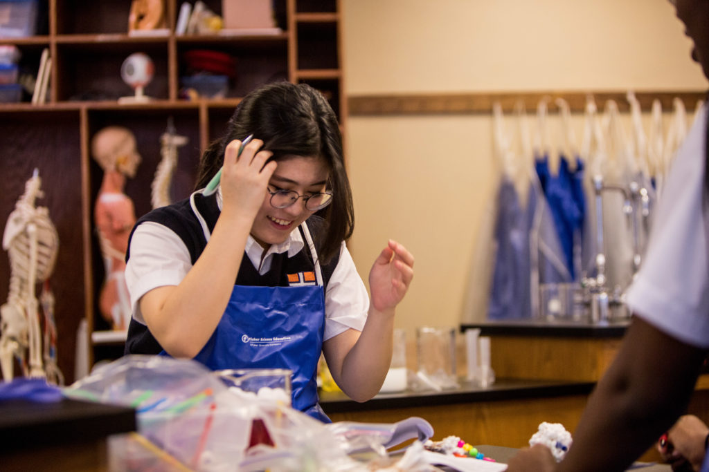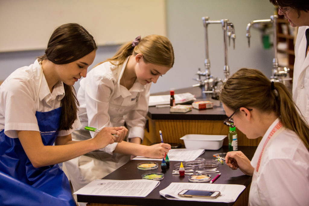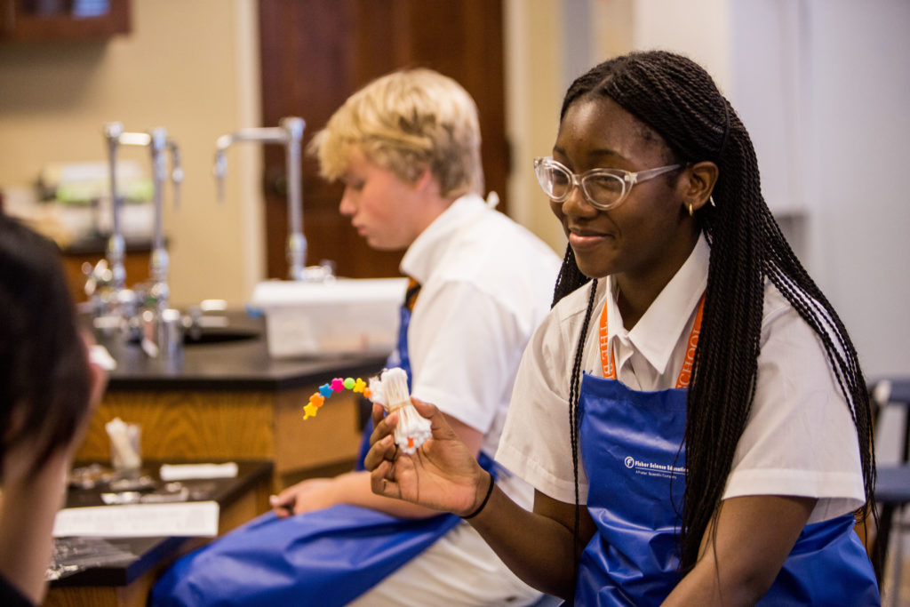 Additionally, they are studying the chemistry of water -its, properties, interactions with other molecules and its movement through cell membranes – all important to sustaining life. The lab highlighted the structure of a cell membrane with students viewing and then constructing their own phospholipid bi layer cell membrane model.