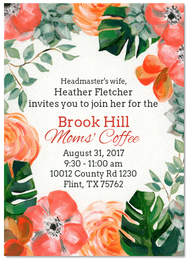 Please join Headmaster’s wife, Heather Fletcher, at her home for coffee and conversation, Thursday, August 31.