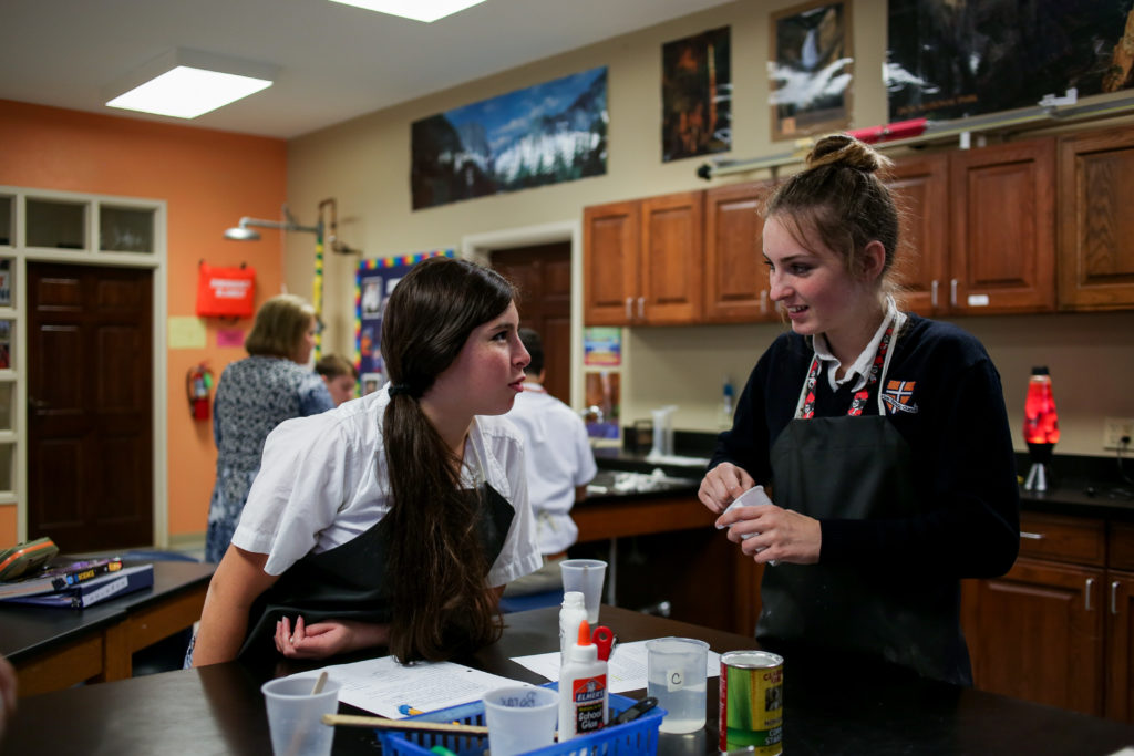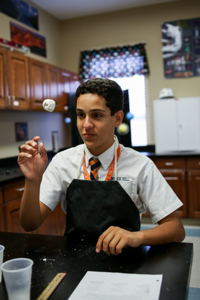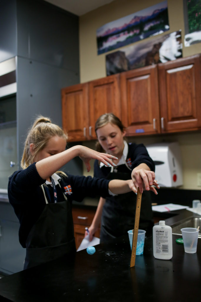 Eighth grade science students make bouncy balls
