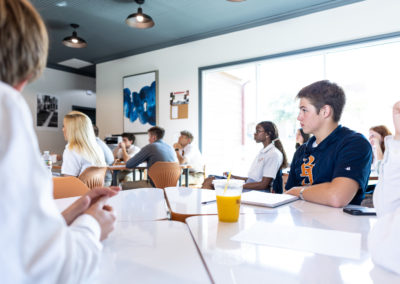 Our entrepreneurship class hosts business owners and entrepreneurs each week, giving them the opportunity to learn about other businesses, and learn principals and ideas they can follow to one day do the same. Learn more about The Brook Hill School of Business here.