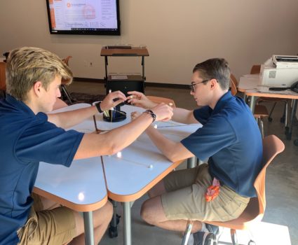 Mrs. King’s entrepreneurship class put their strategic thinking to the test in the Business lab this week, building towers with nothing more than spaghetti, their smarts, a piece of string, and a marshmallow.