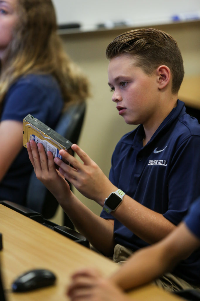 Middle Schoolers examined computer parts This week in Mr. Loudermilk’s class, his students got to hold and touch parts of a computer as they learned what their names and purposes were.