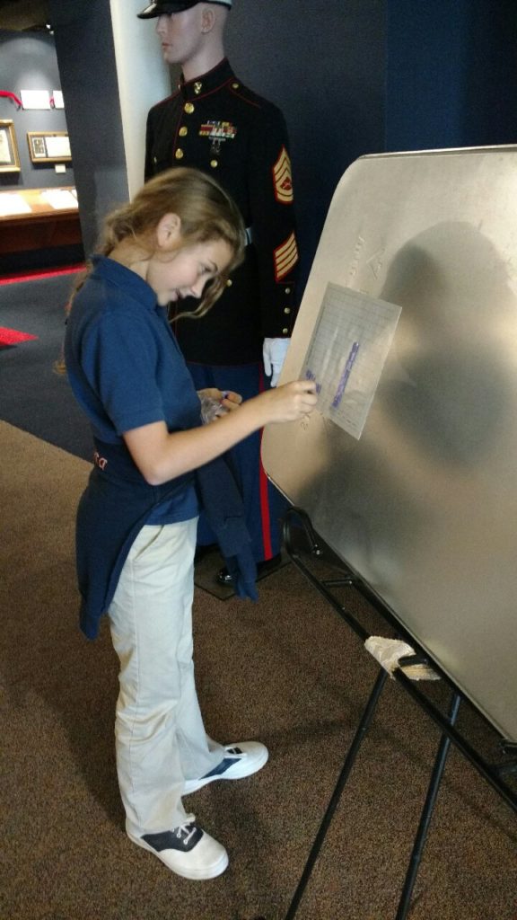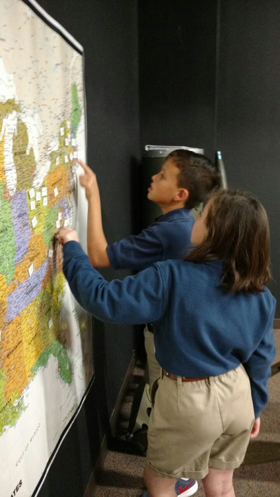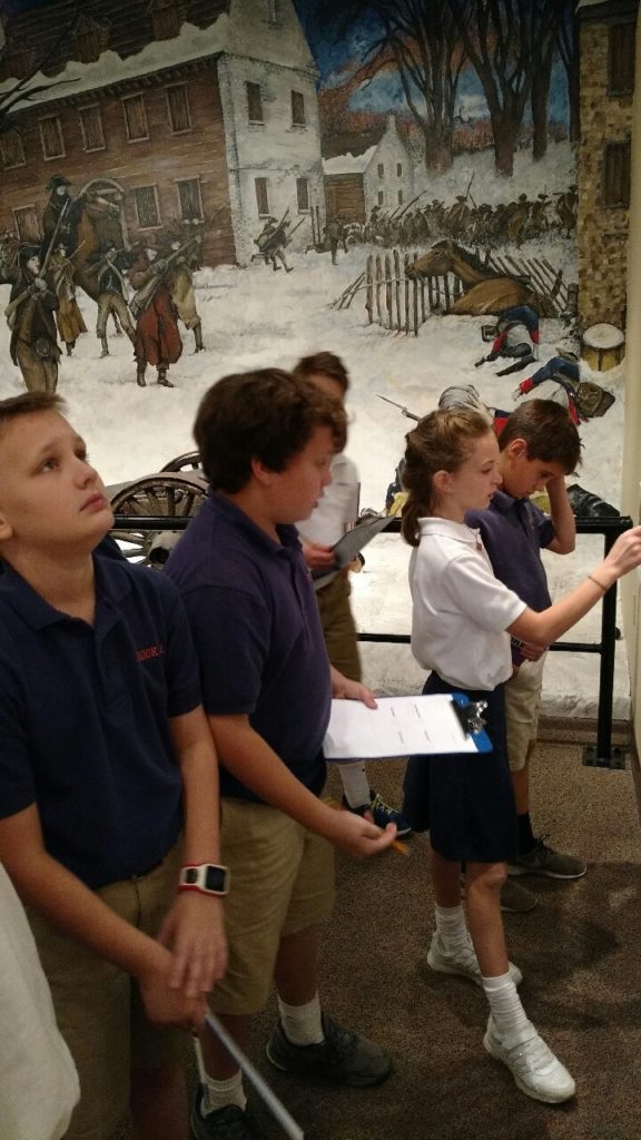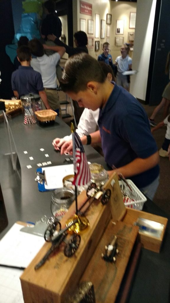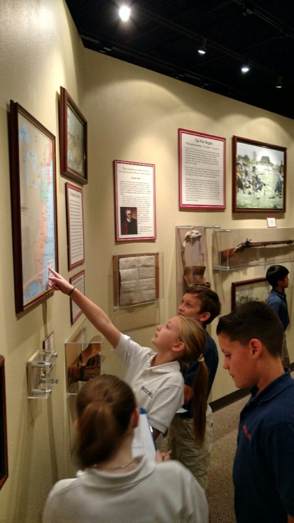 Fifth graders visited the American Freedom Museum this week as an extension of their history lesson on colonial American. They used the resources available to research the 13 original colonies. Each team reported back to the group what they learned about, their assigned colony’s geography, battles fought there, historical significance and which presidents came from each.