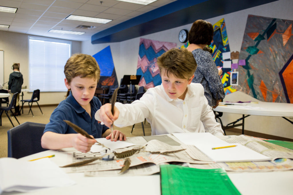 Fifth graders spend a good deal of time learning about the colonial period of American history. To end their study, the classes toured a Brook Hill version of Colonial Williamsburg. Students played a game at the tavern, ordered a new pair of shoes at the cobbler’s shop, went to church, voted in the Governor’s Palace and went to school which was different from their regular classroom! The fifth grade teachers think they appreciate their pencils a little more now!