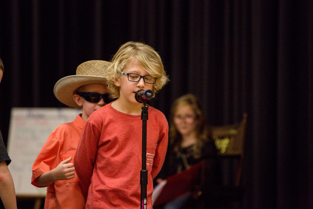 First grade performs in Lower School chapel The 1st grade classes finished off their Lower School Chapel sprint this week with a performance that included their teachers.
