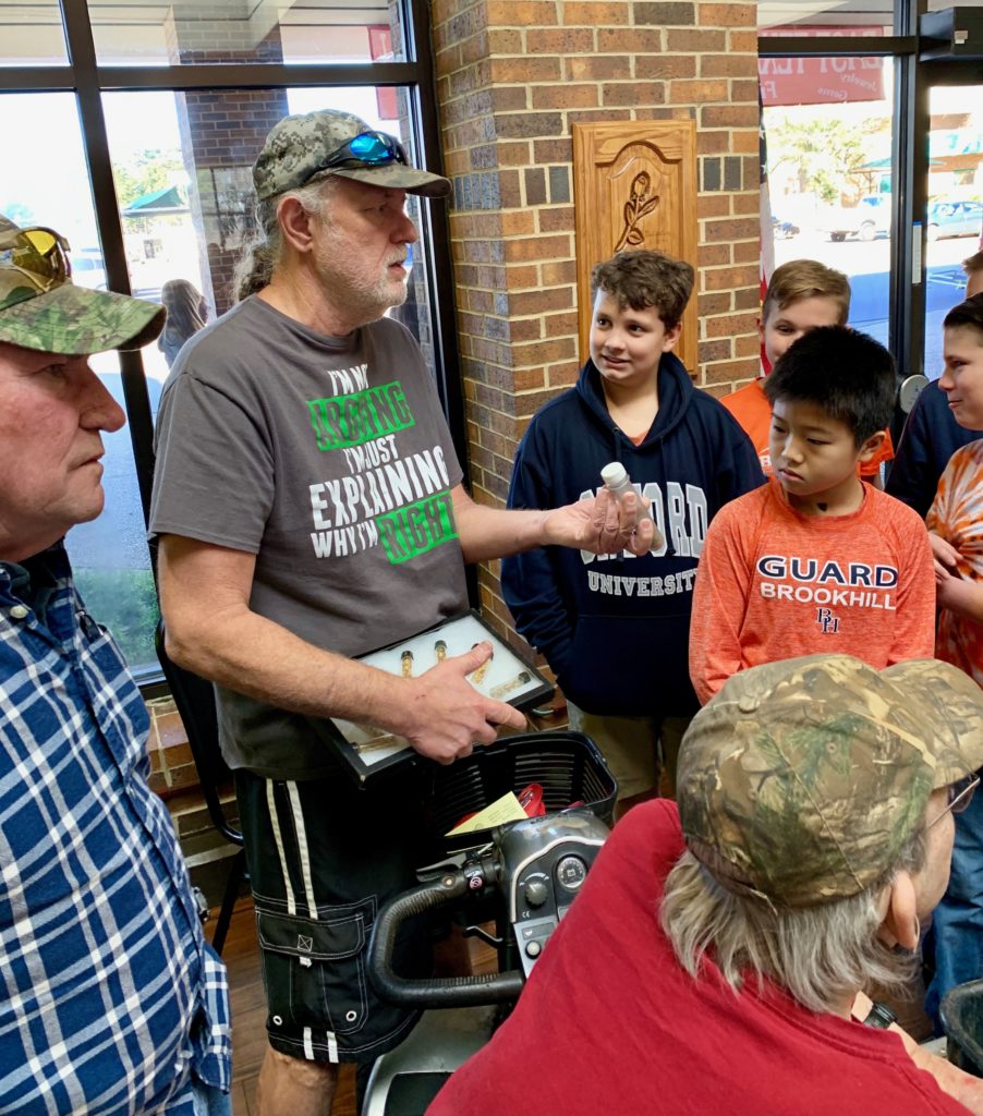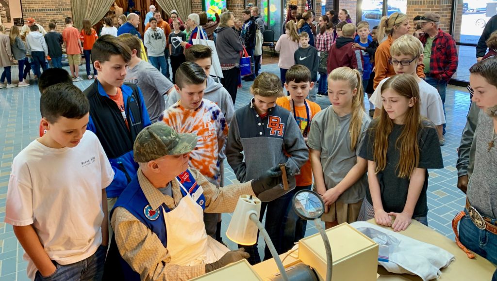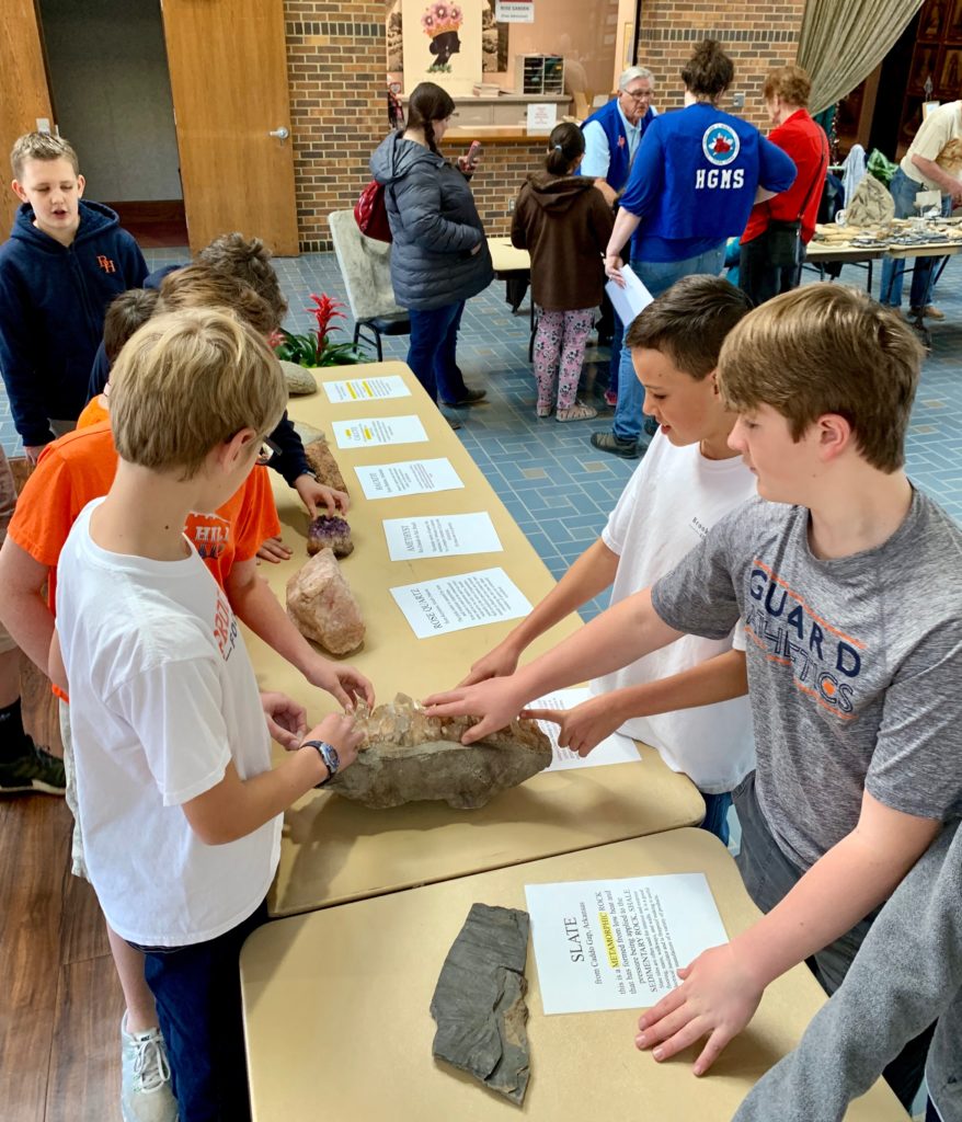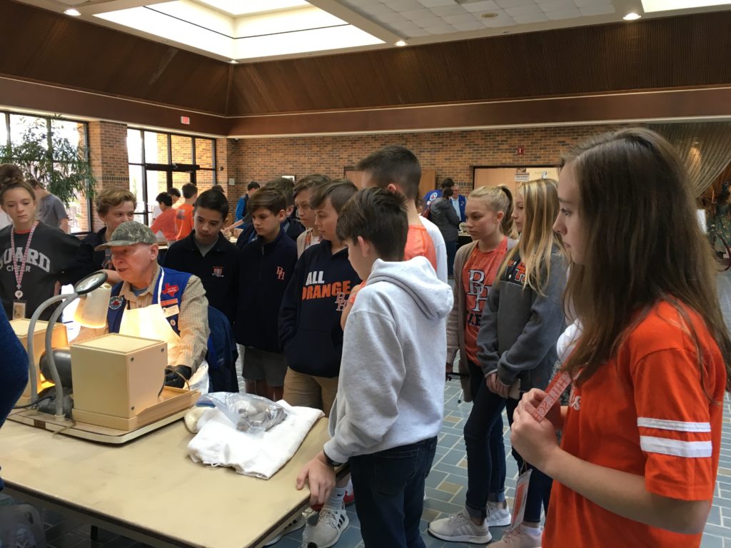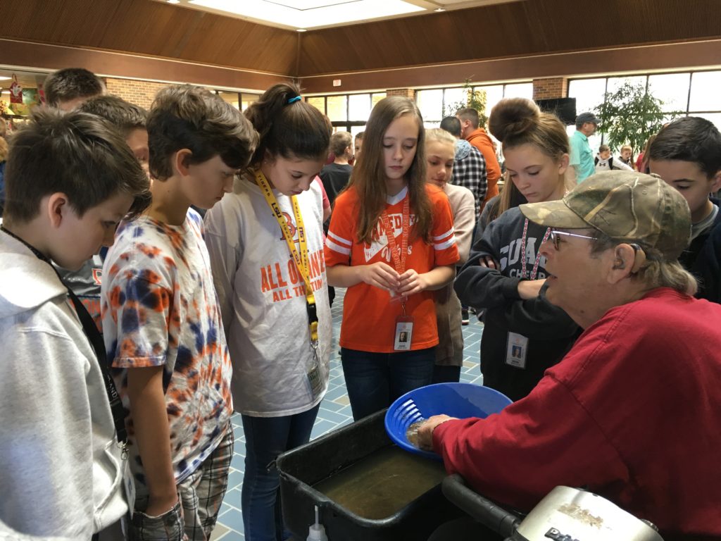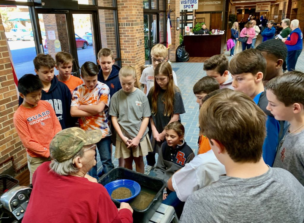 Sixth graders attended the Gem and Mineral Show Education Day on January 25th where they learned how gem stones are shaped from raw materials. They also watched a gold panning demonstration and witnessed rocks that glow in the dark. Then, students were allowed to visit the shopping area where they saw fabulous displays of God’s creative nature in beautiful specimens of rocks and minerals.