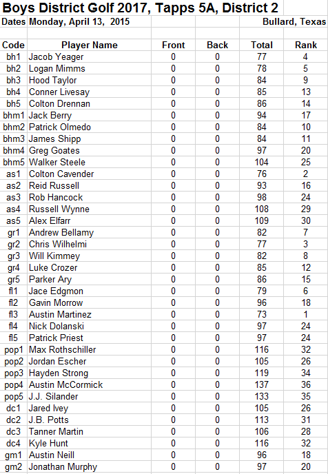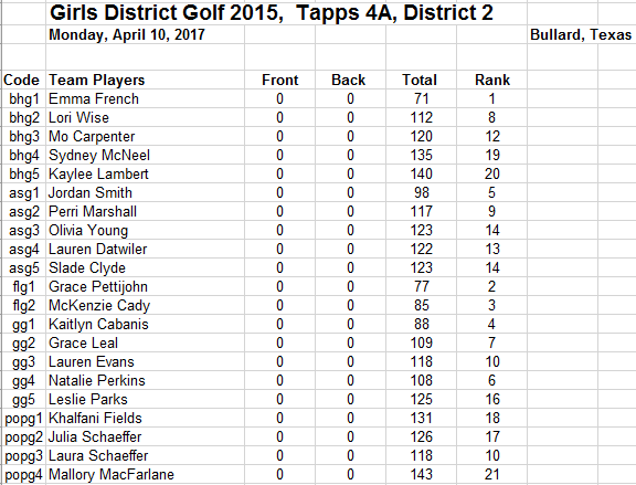 Golf District Results Congratulations to our golf teams for doing so well at District! Regionals will be April 24th and Conner Neill, Shelby Ferraris, Andrea Rodriquez, Sydney Martinez and Kate Brooks will be participating.