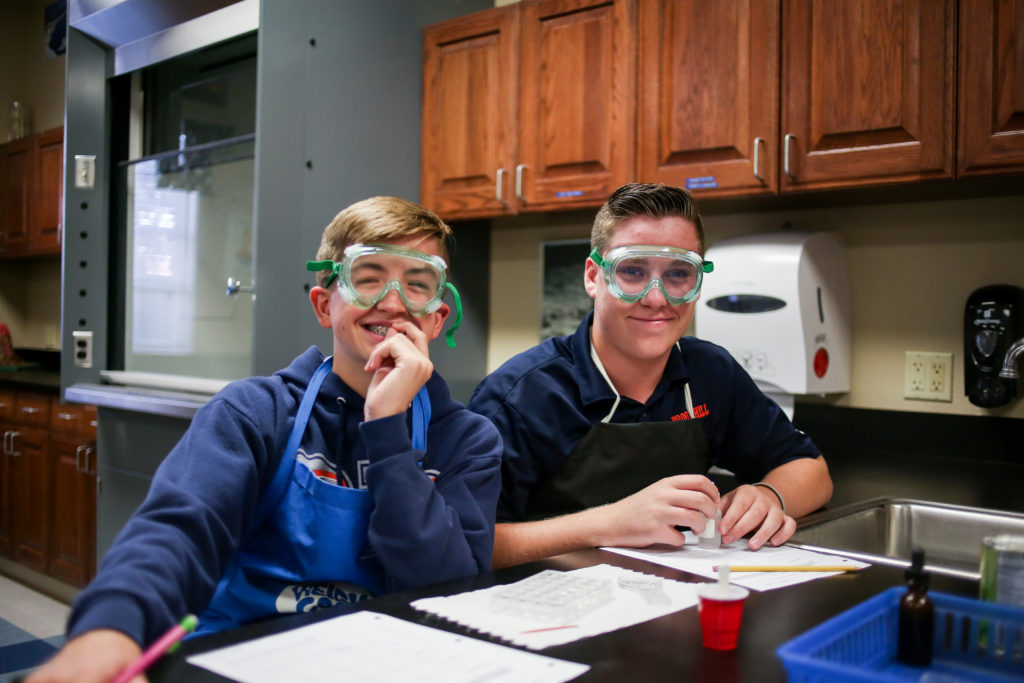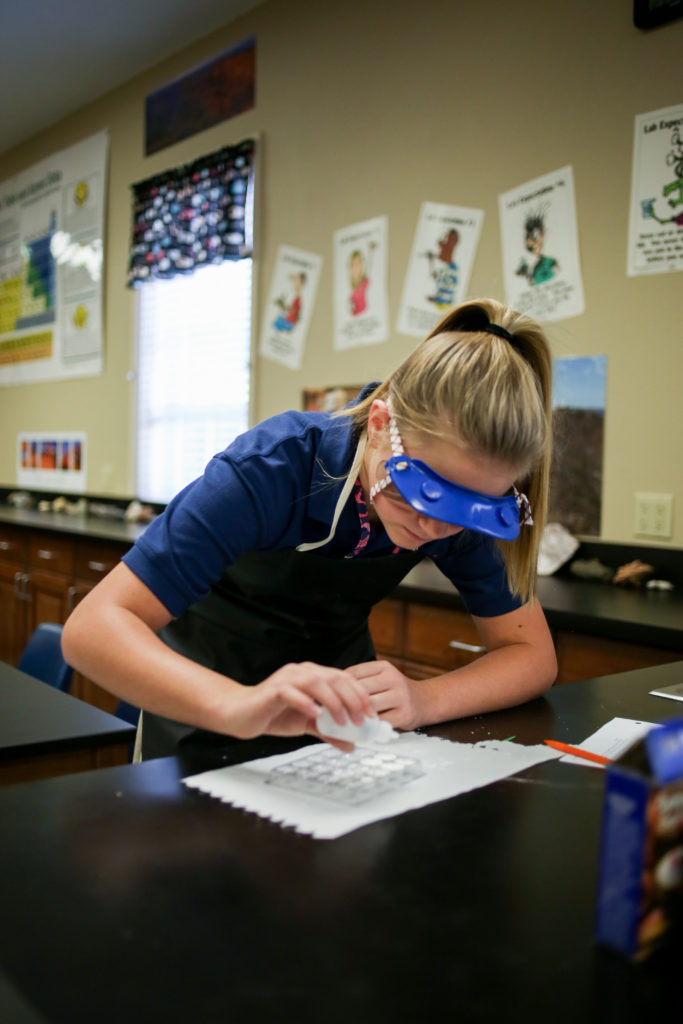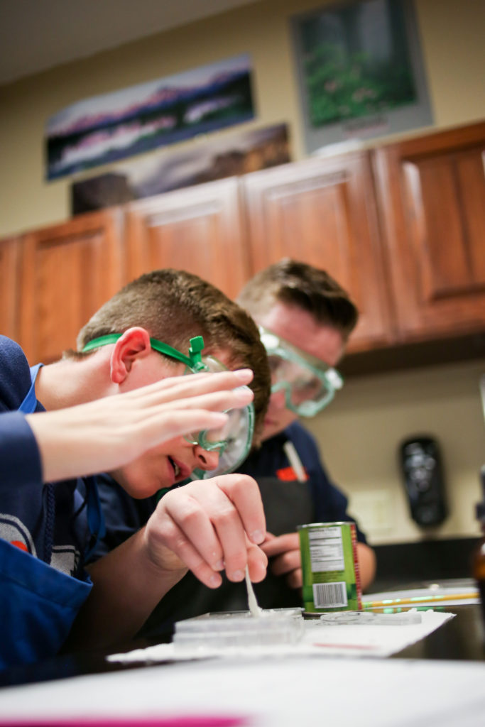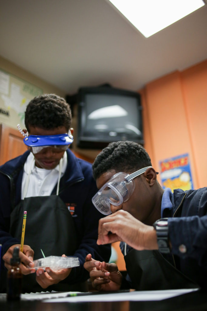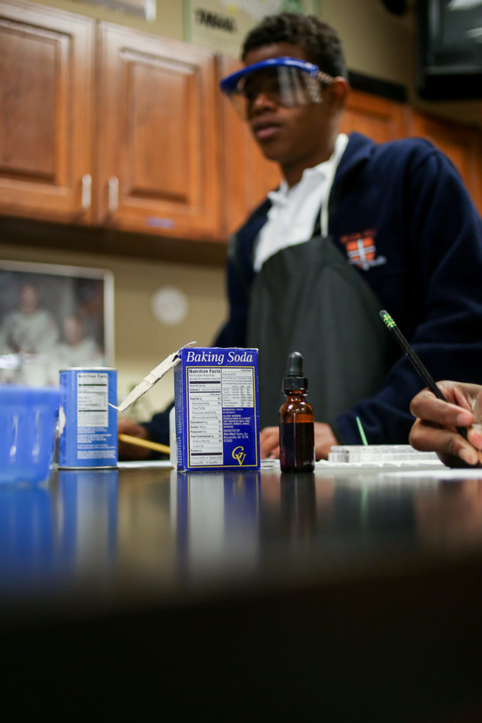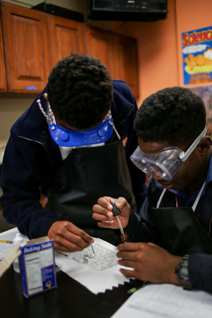 Eighth graders are learning to identify physical and chemical changes by testing four white powders. Each were observed dry and then after mixing with water, vinegar and iodine. Students were looking for evidence of which change occurred.
