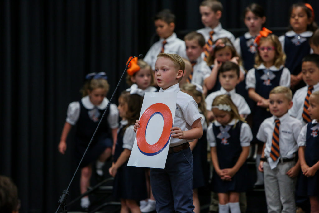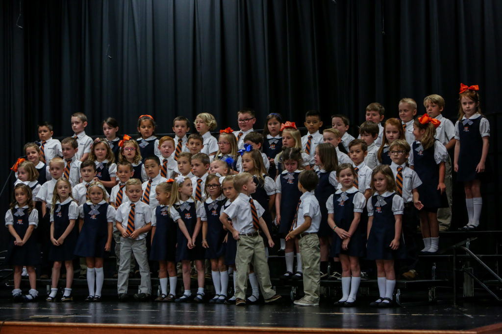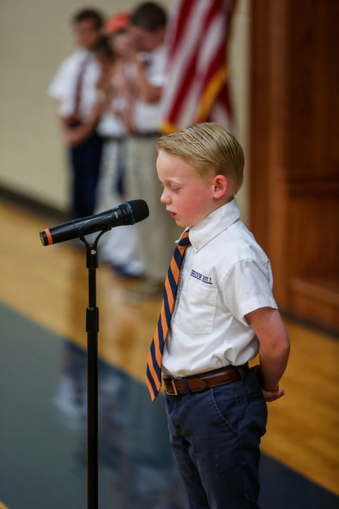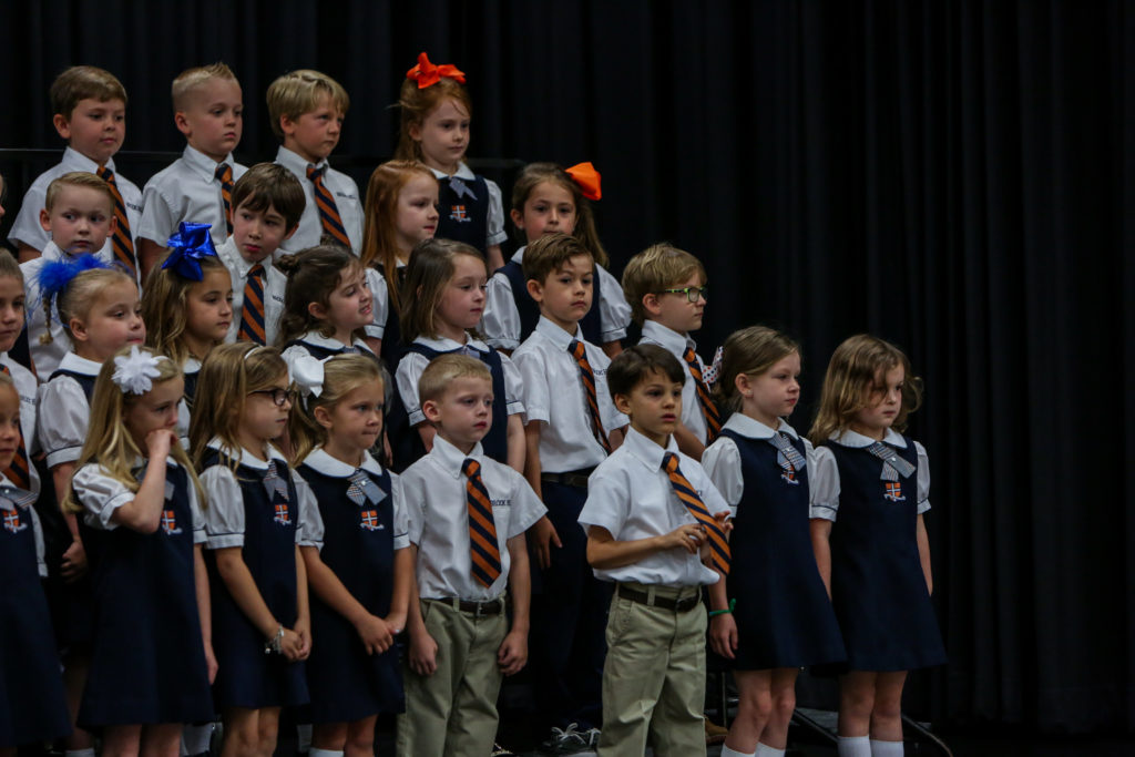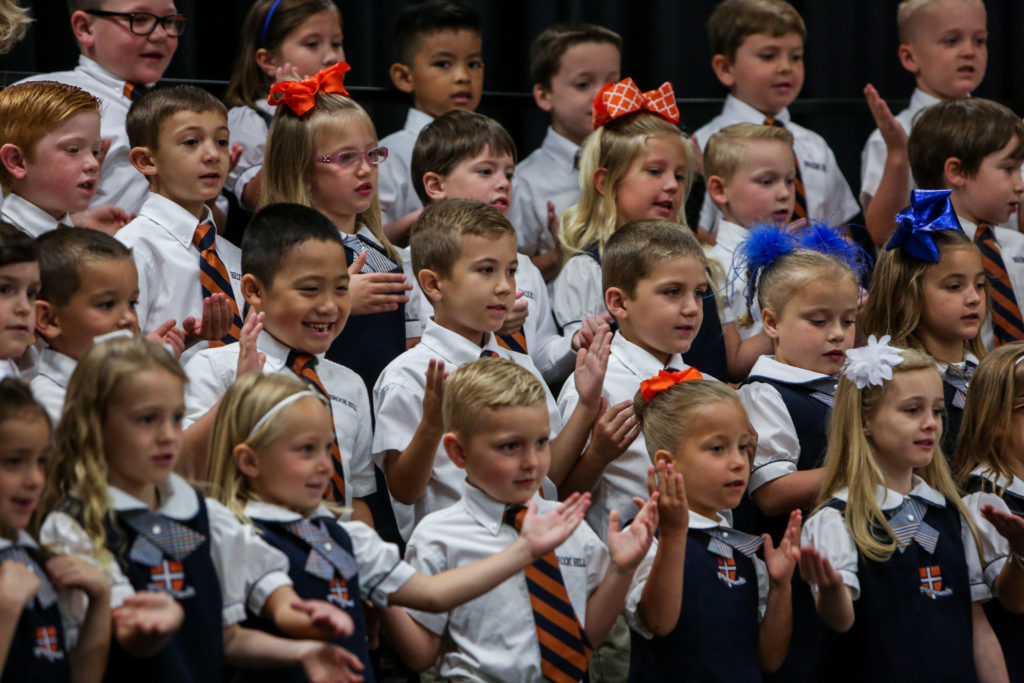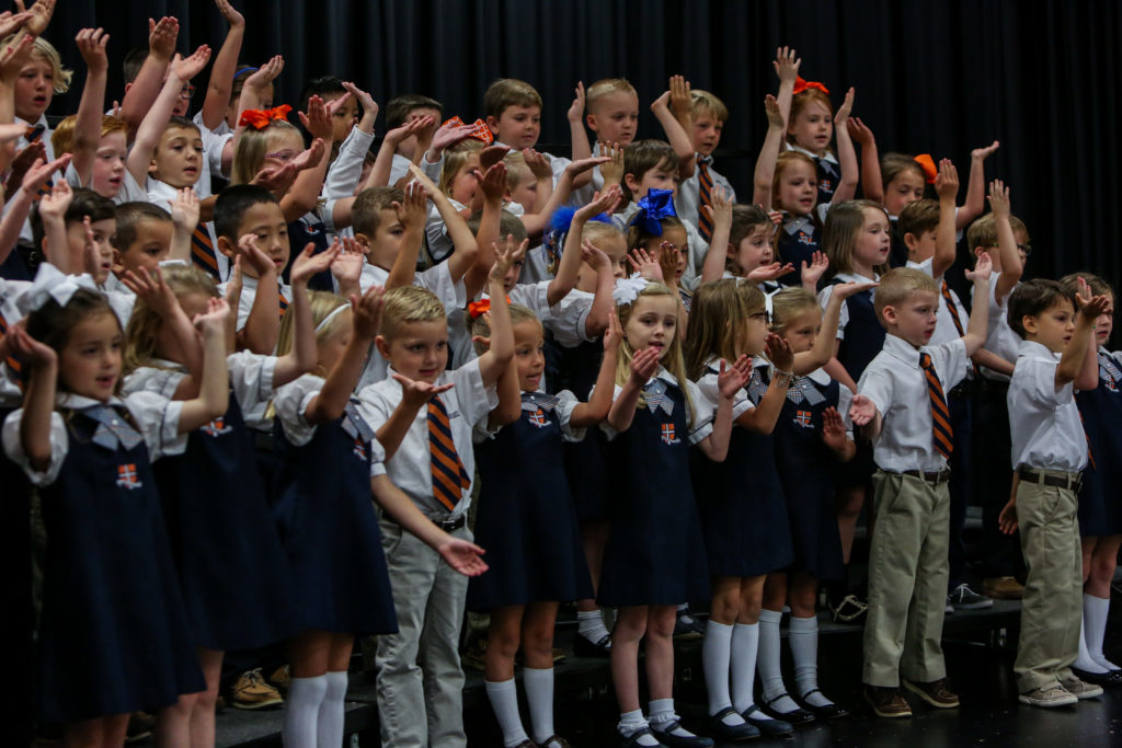 Kindergarten advances to first grade The Kindergarten classes led chapel on Wednesday and shared with their peers and parents what they have learned this year and why they are looking forward to first grade next year.