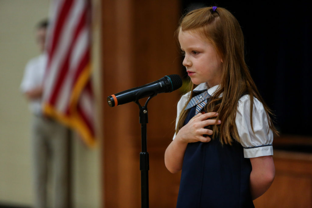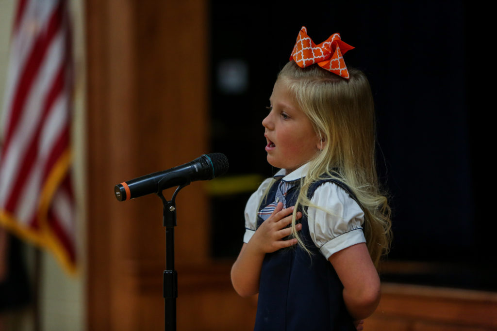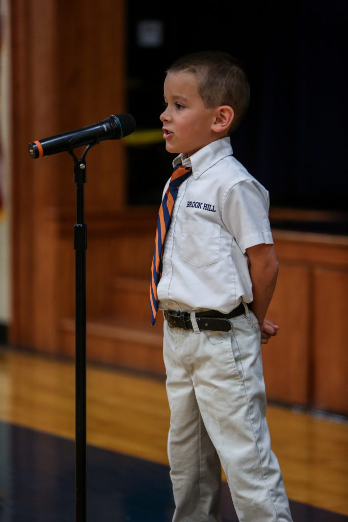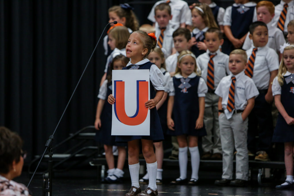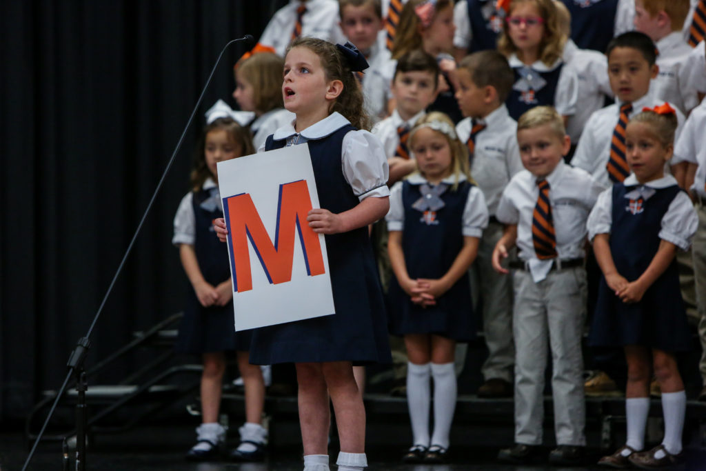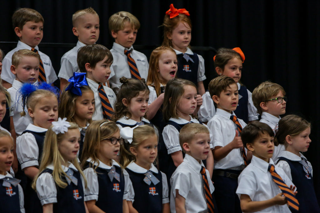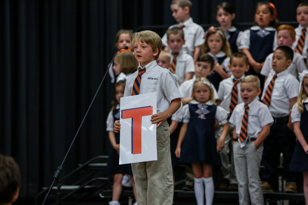 Kindergarten advances to first grade The Kindergarten classes led chapel on Wednesday and shared with their peers and parents what they have learned this year and why they are looking forward to first grade next year.