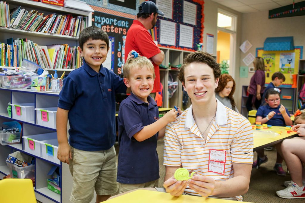Kindergarten Day This year, our senior class joined our Pre-K and Kindergarten classes for the day. They were each assigned a “buddy” or two and traveled to different stations around our Lower School.