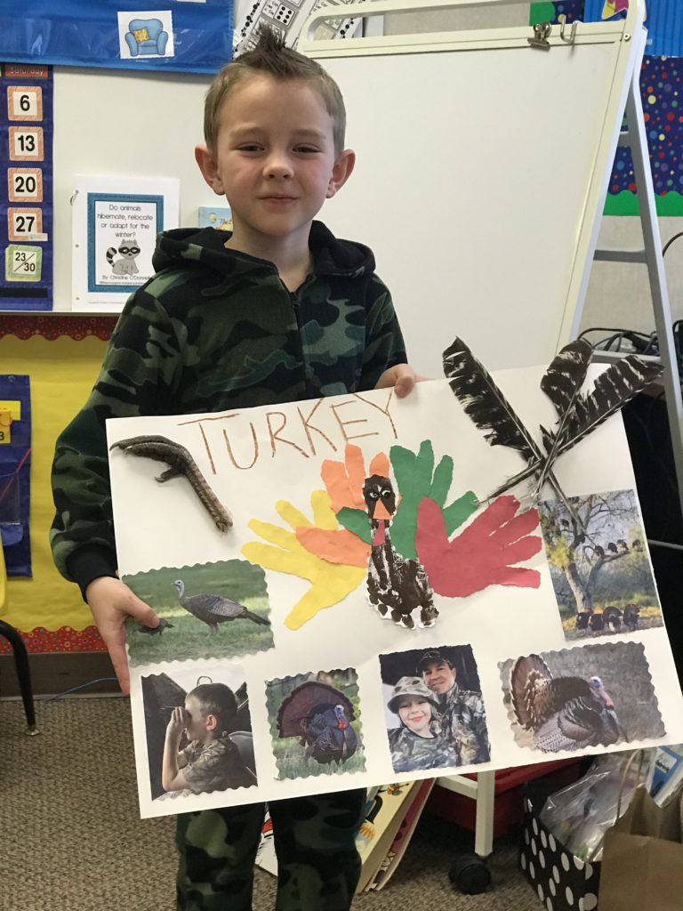 Kindergarten students have learned about animal habits in winter this semester. As a culmination of this unit, students taught the class about their assigned animal using a poster they created at home.
