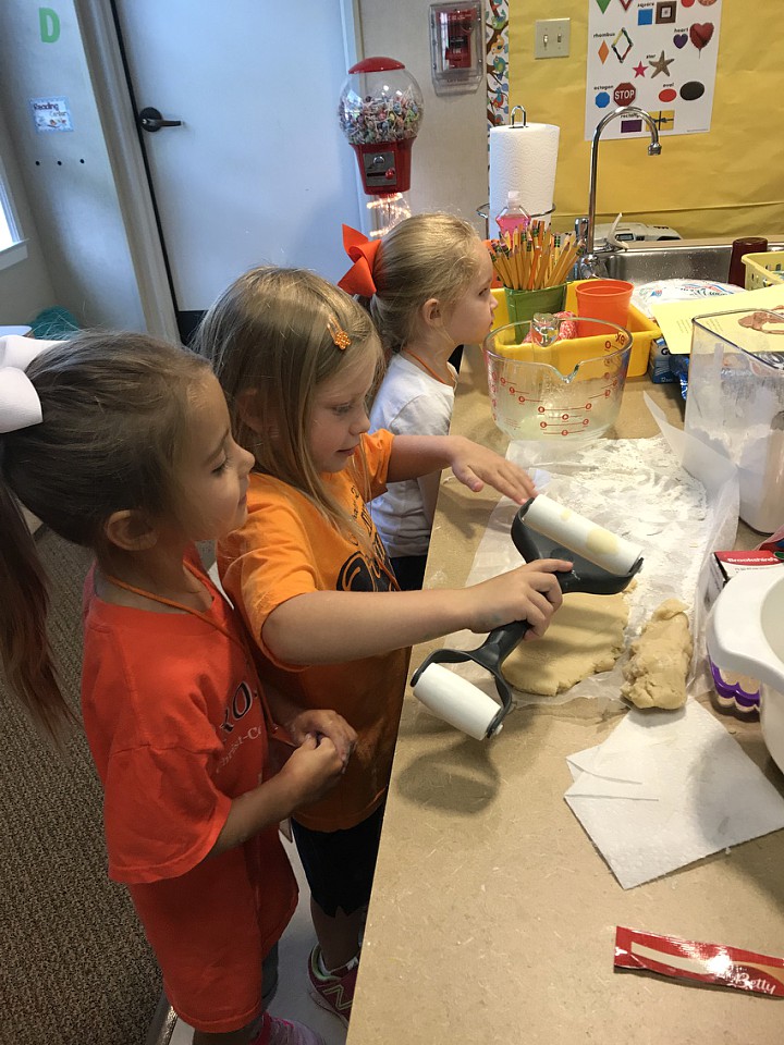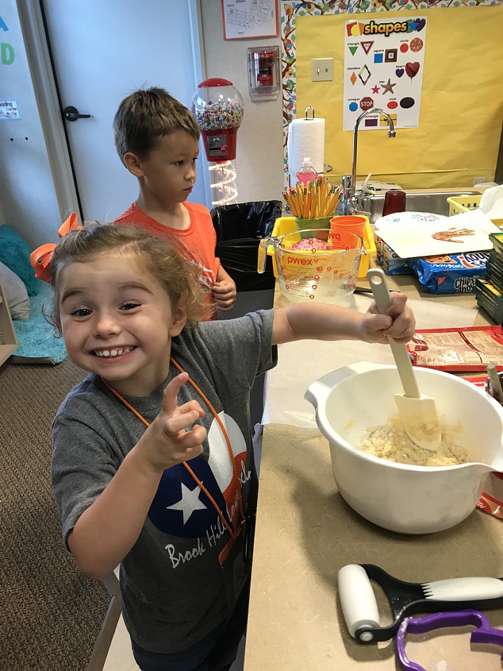 Pre-K read the story The Kissing Hand by Audrey Penn last week. They followed it up with a cooking activity where the students made hand shaped cookies and put a chocolate kiss in the center of it just like in the story. This was a great way to end the first week of school.