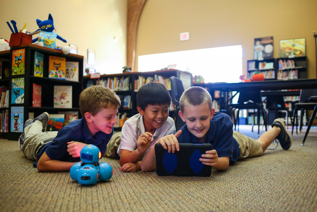 Forty 3rd, 4th and 5th grade students are learning how to program robots Dash and Dot using one of our coding apps on our school iPads. Students are able to program these robots to complete a sequence of events. Whereas in the past we programmed characters on a computer screen, now we have an opportunity to interact with a robot that can move and speak.