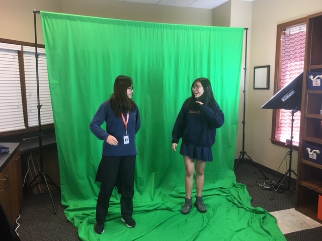 Today, our Marketing class worked in teams to create commercials for their fictitious products using Brook Hill’s green screen!