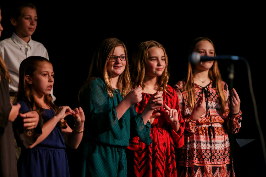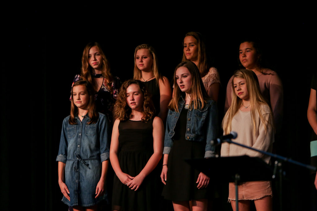 After that, the 8th grade girls’ choir sang two songs, a Slovakian lullaby and a song from the movie Home Alone. The evening concluded with the combined 7th and 8th grade choirs singing Magnificat (a song based on the words of Mary in the book of Luke) and The Lord Bless You and Keep You.